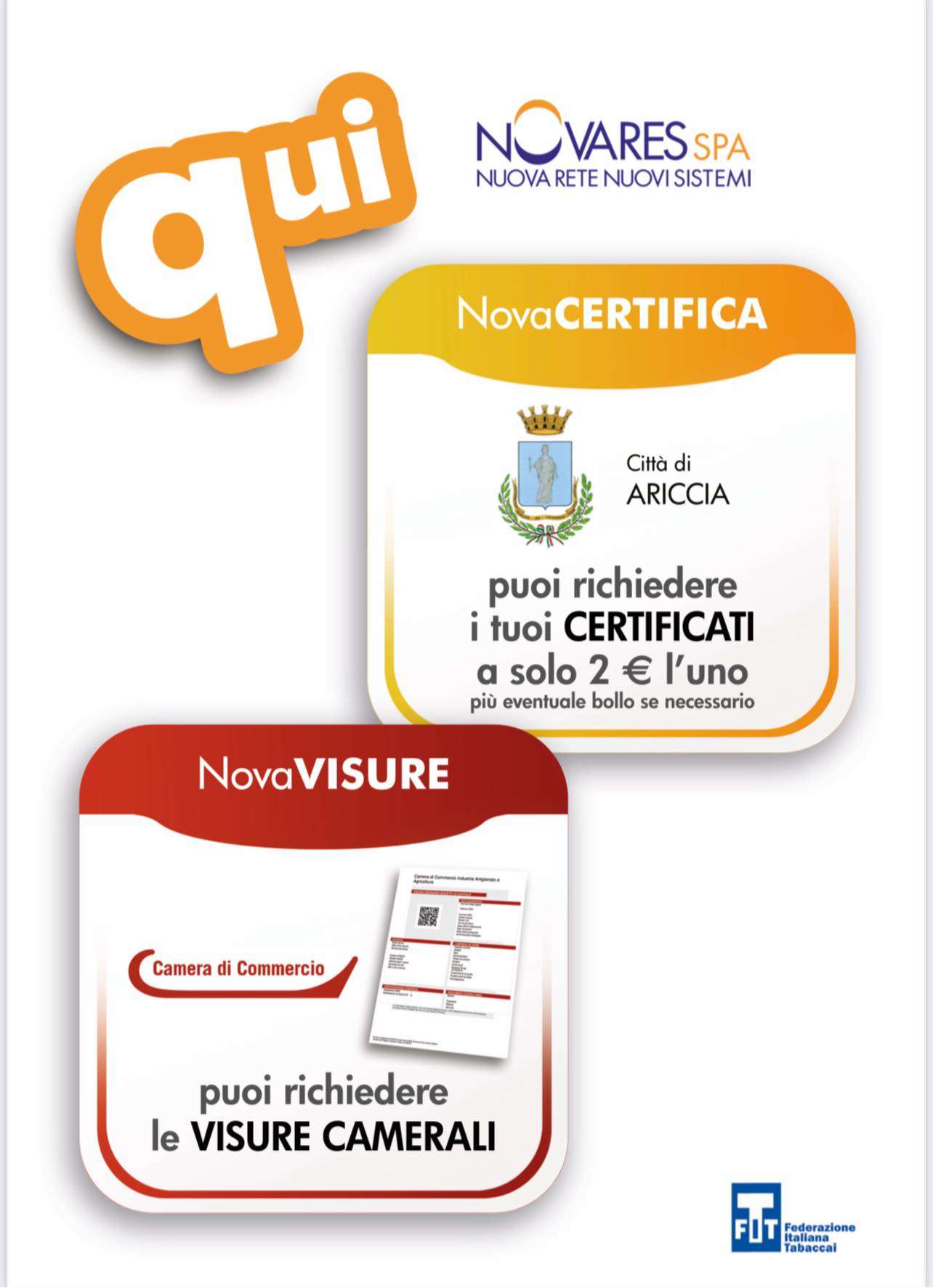 Infine, dal mese di Novembre, potranno aderire al progetto di Ariccia tutte le Tabaccherie Associate a F.I.T. che, ricordiamo, potranno rilasciare anche certificati della Camera di Commercio.