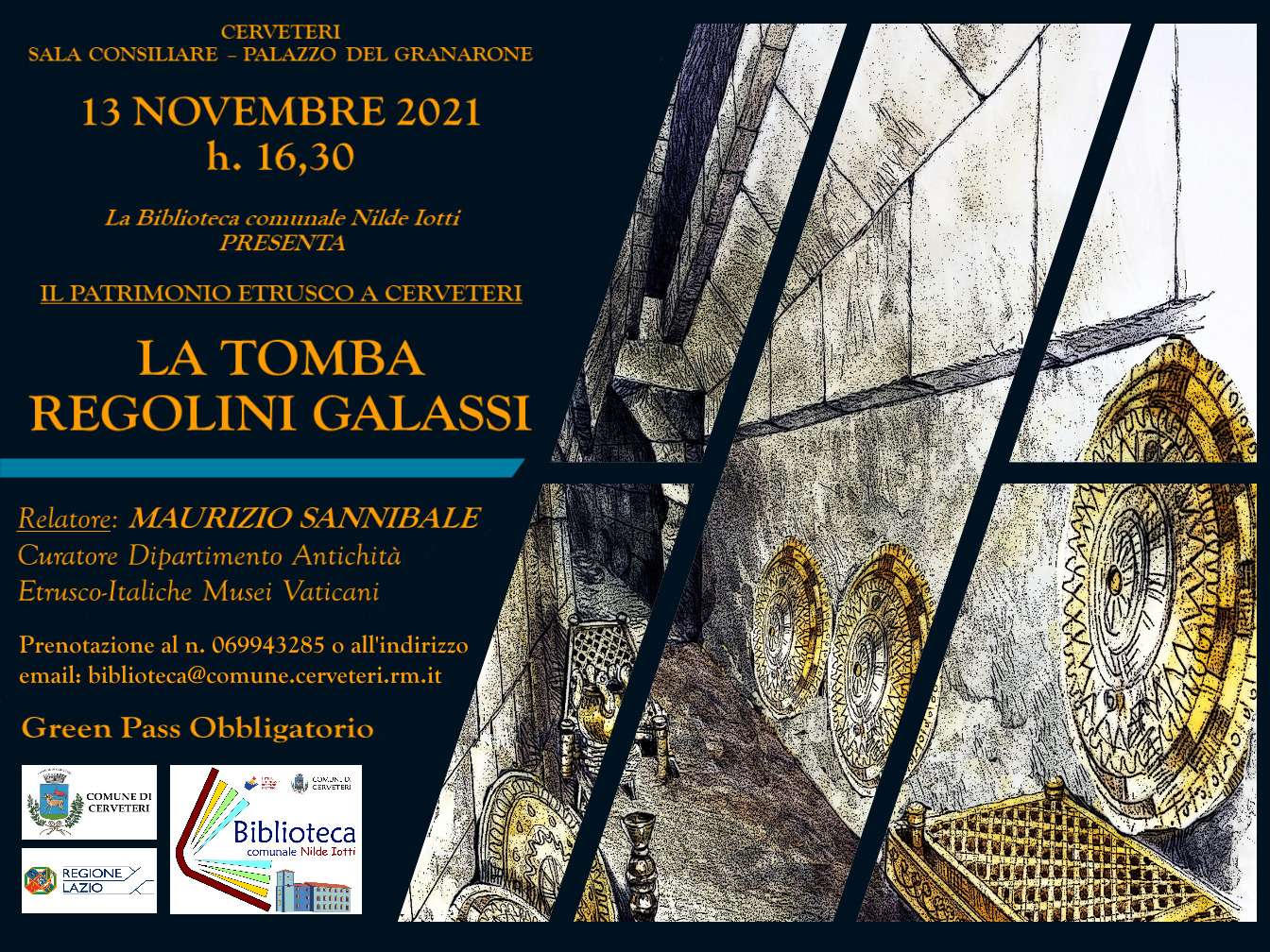 Sabato 13 novembre, nell’ambito del progetto finanziato dalla Regione Lazio “PATRIMONIO ETRUSCO A CERVETERI” la Biblioteca comunale di Cerveteri promuove una conferenza di elevato valore culturale.