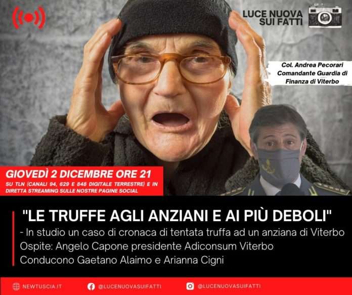 Ne parleremo con il Col. Andrea Pecorari, Comandante provinciale della Guardia di Finanza di Viterbo: l’impegno degli uomini della Finanza è costante tutto l’anno per reprimere ma anche prevenire le truffe ad anziani e persone deboli.