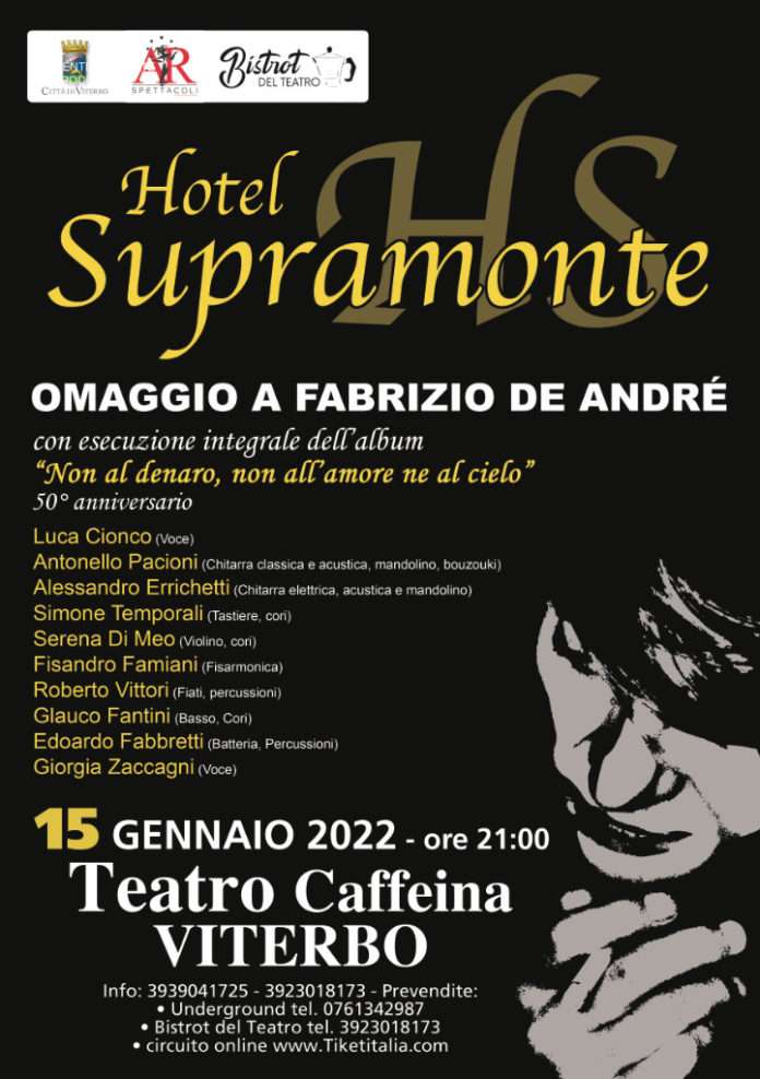 Per la prima volta in carriera, “Hotel Supramonte” propone dal vivo l’ascolto integrale dell’album “Non al denaro non all’amore né al cielo”, a 50 anni dalla sua prima pubblicazione.