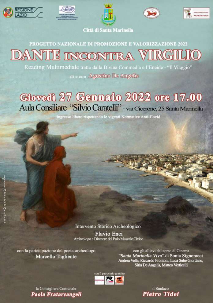 Il 27 aennaio alle 17 nella nuova aula consiliare “Silvio Caratelli”, il Comune di Santa Marinella renderà omaggio a Dante e Virgilio con il reading multimediale tratto dalla Divina Commedia e dall’Eneide ”Dante incontra Virgilio” di e con Agostino De Angelis.
