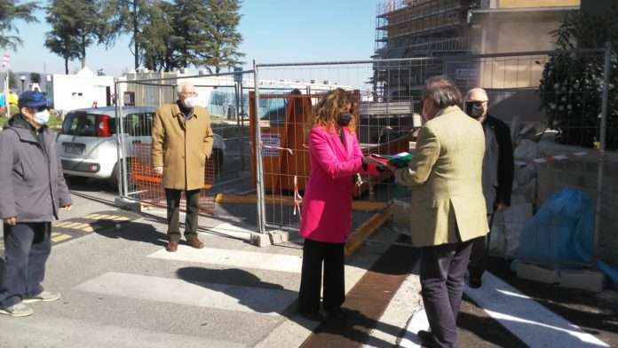 Si è svolta nei giorni scorsi la consegna delle bandiere italiana ed europea da parte del Lions club Bracciano Anguillara Sabazia Monti Sabatini alla direzione sanitaria dell’ospedale “Padre Pio”. Alla cerimonia erano presenti Gabriele Brenca, presidente del club Lions e i soci, il generale Bruno Riscaldati e Maria Elisa Pezone, madrina dell’onoranza alle bandiere; e ancora Antonio Carbone, direttore sanitario del nosocomio, Grazia Ribaudi, responsabile di “Fragilità e dimissioni protette” per l’Asl Rm 4 distretto 3, Anna Radicioni di “Cittadinanzattiva”, i cittadini (e fra questi il presidente de “L’agone nuovo” Giovanni Furgiuele, nda). Dopo la consegna delle bandiere ai rappresentanti della struttura ospedaliera, questi hanno fatto issare sui pennoni posti all’ingresso del “Padre Pio” i vessilli che, per effetto di un piccolo refolo, si sono messi a garrire, un po’ timidamente, alla luce della giornata.