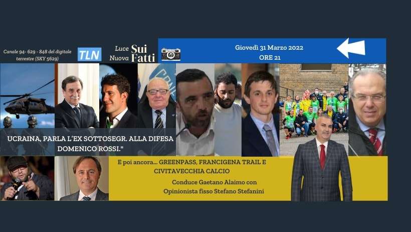 Parte, questa puntata, inoltre, la nuova rubrica tematica “Viaggi astrali” a cura di Mariateresa Rotola. L’appuntamento è per giovedì 31 marzo alle 21 (ed in replica venerdì 1 aprile alle 14.30) per la 25° puntata di “Luce Nuova sui fatti”, che andrà in onda su Tele Lazio Nord (canali 94, 629, 848 Dtt e 5629 Sky) e sui canali social della trasmissione