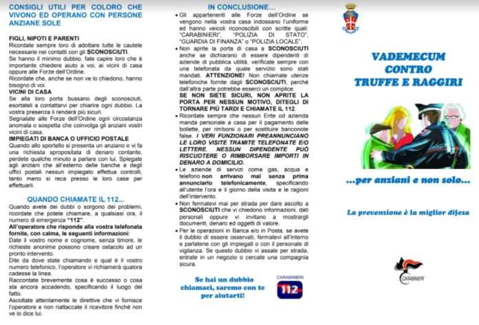 L’Arma dei Carabinieri raccomanda il massimo dialogo in famiglia tra giovani e anziani per favorire una reale sensibilizzazione preventiva, che può essere potenziata proprio dallo scambio domestico sul tema.