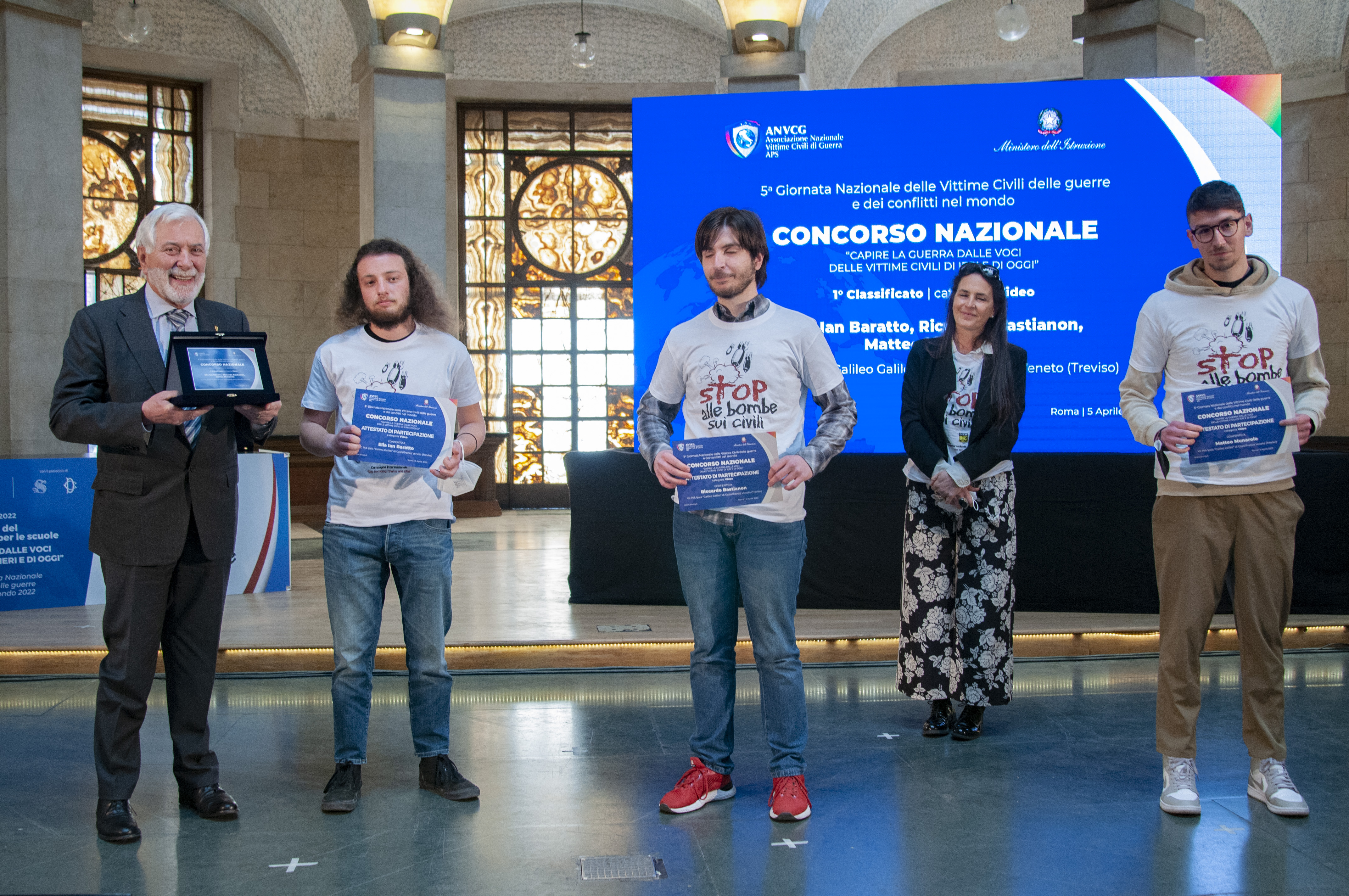 Premiati a Roma – all’Auditorium della Casa Madre dei Mutilati – gli studenti vincitori della 5ª edizione del concorso nazionale per le scuole per la Giornata Nazionale delle vittime civili delle guerre e dei conflitti nel mondo, dal titolo “Capire la guerra dalle voci delle vittime civili di ieri e di oggi”.