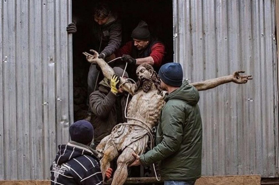 Arte ferita, i bombardamenti russi non hanno risparmiato neppure il Museo d’Arte di Kharkiv e il teatro di Mariupol, che l’Italia – per bocca del Ministro Dario Franceschini – si è offerta di ricostruire; arte da salvaguardare: a Leopoli, cittadina crocevia tra l’Ucraina e l’Europa, che conta sette siti patrimonio dell’Unesco, tutte le opere d’arte (compreso l’ormai iconico crocifisso ligneo della Cattedrale armena) sono state spostate o avvolte in teli ignifughi e vari altri dispositivi di protezione per salvarle dalle bombe.