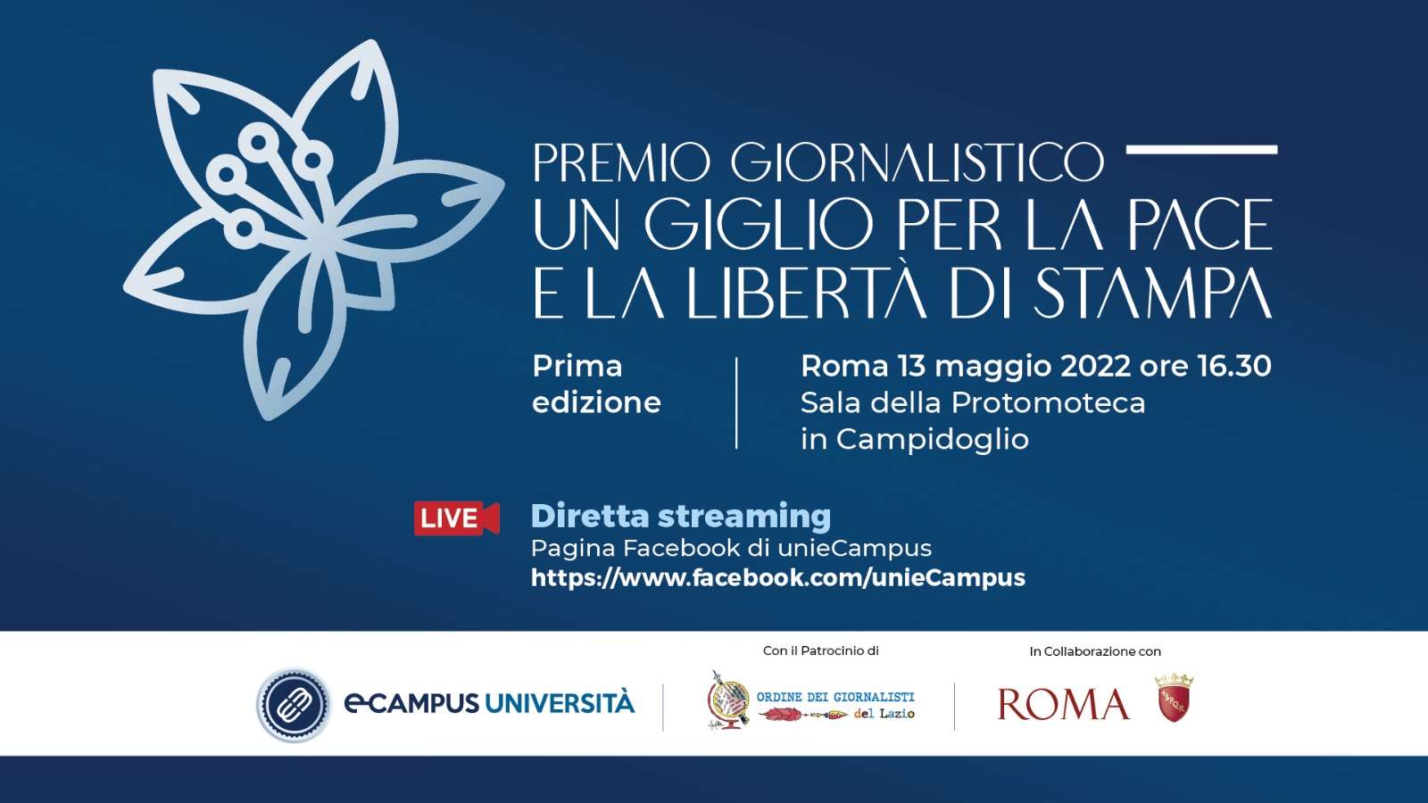 L’Università eCampus, con il patrocinio dell’Ordine dei Giornalisti del Lazio e in collaborazione con Roma Capitale, promuove il premio giornalistico “Un Giglio per la Pace e la Libertà di Stampa” che avrà cadenza annuale. La cerimonia di premiazione si terrà a Roma, venerdì 13 maggio alle ore 16:30 nella Sala della Protomoteca in Campidoglio e sarà condotta da Milly Carlucci.