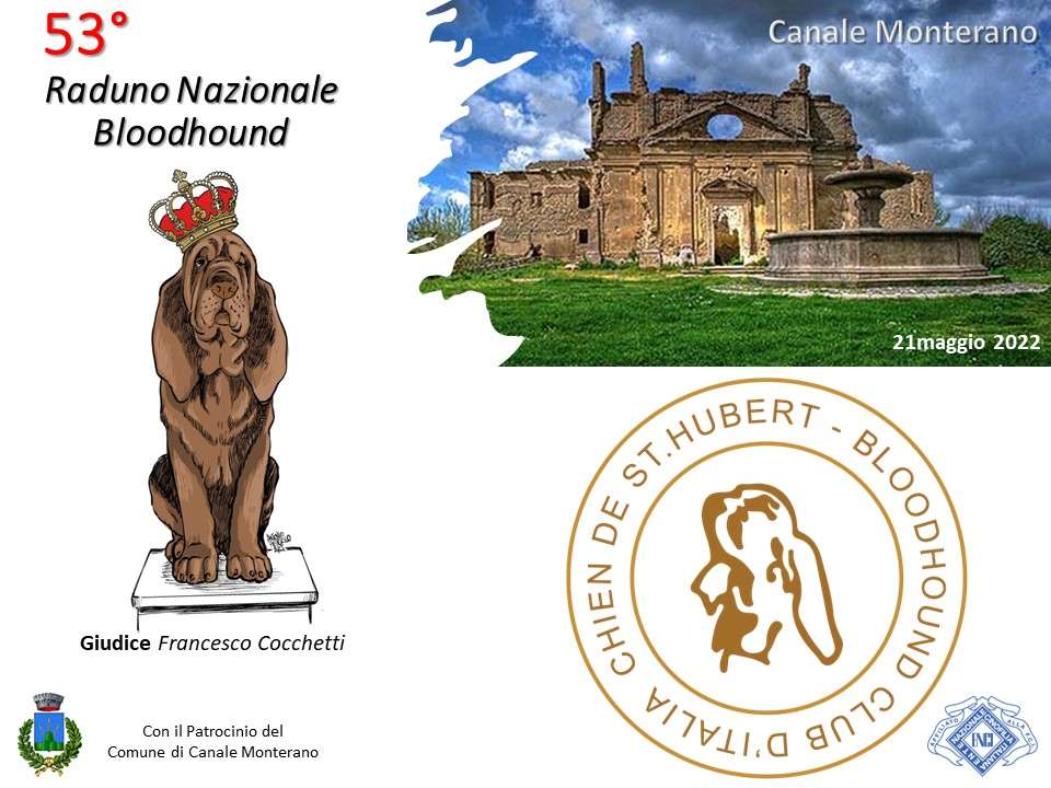 Il Bloodhound Club d’Italia, con il Patrocinio del Comune di Canale Monterano e della Riserva Naturale Regionale Monterano, organizza per il 21 maggio 2022 il “53° Raduno Nazionale Bloodhound” evento ENCI, Ente Nazionale Cinofilia Italiana, svolto dall’esperto Giudice Francesco Cocchetti.