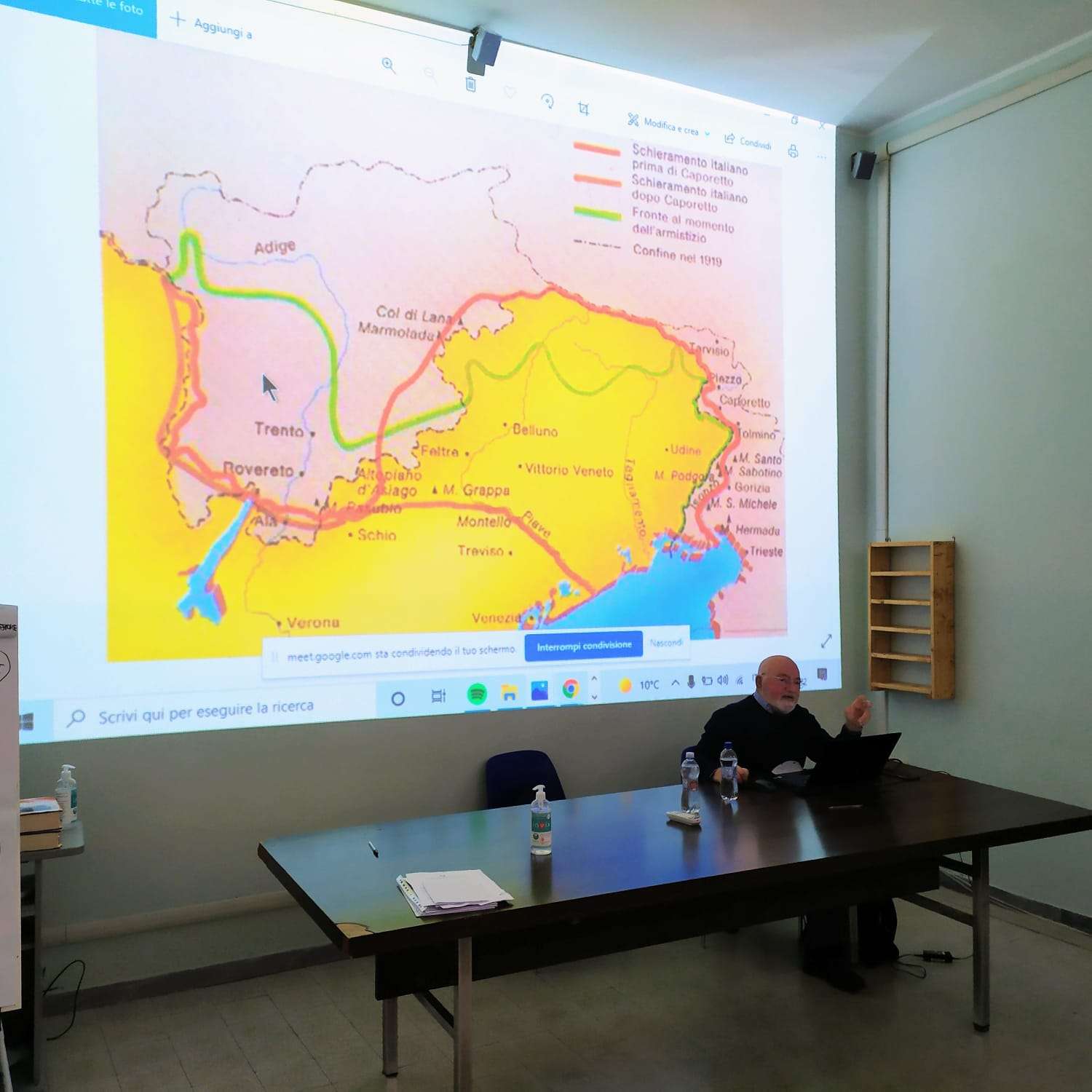 Gli approvvigionamenti non erano garantiti ,spesso mancavano acqua e altre provviste, e avvenivano grazie ai muli o binari con carretti simili a quelli delle miniere. Migliaia di persone persero la vita in guerra, e tantissime altre furono mutilate a vita, tant’è che ogni famiglia italiana ebbe almeno una vittima nel conflitto. La Prima guerra mondiale rimase nella mente di tutti i cittadini, e varie iniziative furono create per ricordare l’evento e le sue vittime. Una delle più significative fu quella del Milite Ignoto: al Vittoriano di Roma fu sepolto un militare italiano dei quali non era stato possibile risalire all’identità, e che idealmente rappresenta tutti i caduti italiani in guerra. L’incontro con il relatore ha dato la possibilità di iniziare un dialogo su vari argomenti legati alla guerra, realtà purtroppo ancora attuale, come abbiamo modo di constatare quotidianamente. Abbiamo parlato di una certa attitudine da parte dell’uomo alla violenza e alla guerra, e di come questa sia favorita dal commercio di armi. Occasioni del genere sono molto importanti, perché parlare delle dinamiche dei conflitti ci permette di capirli meglio, e di conseguenza ci dà l’opportunità di diventare cittadini più consapevoli. Dopotutto, l’unica cosa peggiore di un mondo in subbuglio è un mondo in subbuglio e ignorante, dove nessuno impara niente dalla storia.