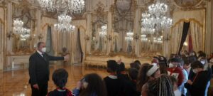 All’ingresso c’era una guardia, un corazziere, altissima che indossava una splendida uniforme. Dopo averla superata, siamo arrivati nel luogo che la guida ci ha detto essere il più antico del Quirinale: costruito più di 400 anni fa! Siamo rimasti scioccati, non ci aspettavamo fosse così ben tenuto: è davvero incredibile! Abbiamo così visitato molte stanze, ad esempio la Sala degli Specchi, un tempo destinata al ballo; ora però non ci si balla più, ma ci si fanno delle riunioni con il Presidente Mattarella.