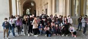 Dopo aver lasciato la residenza presidenziale, abbiamo pranzato all’interno della Villa Carlo Alberto e, dopo una breve pausa, ci siamo diretti verso un altro bellissimo luogo, le Terme di Diocleziano. Qui la nostra guida è diventata il nostro professore, Antonello Nobile, che ci ha spiegato la storia di quelle rovine e ce le ha fatte visitare. Un tempo quelle terme erano pubbliche e i cittadini romani ci andavano tutti i giorni pagando pochi soldi. Era un luogo dove si socializzava molto o si parlava di lavoro. All’ingresso si lasciavano le proprie cose all’interno di uno spogliatoio e poi ci si poteva immergere in piscine fredde, tiepide e calde per abituare il corpo. Dopo la caduta dell’impero romano, nel medioevo, questo edificio è diventato una certosa (cioè la “casa” dei monaci certosini) e oggi, percorrendo il suo immenso chiostro, si possono osservare antichi reperti come statue, busti, sarcofagi e resti di colonne. La professoressa Aiello ci ha spiegato con quali materiali sono state realizzate queste opere (marmo, granito, travertino, eccetera), poi, per riposare, siamo andati a sederci sul bordo di una grande fontana, purtroppo senz’acqua.