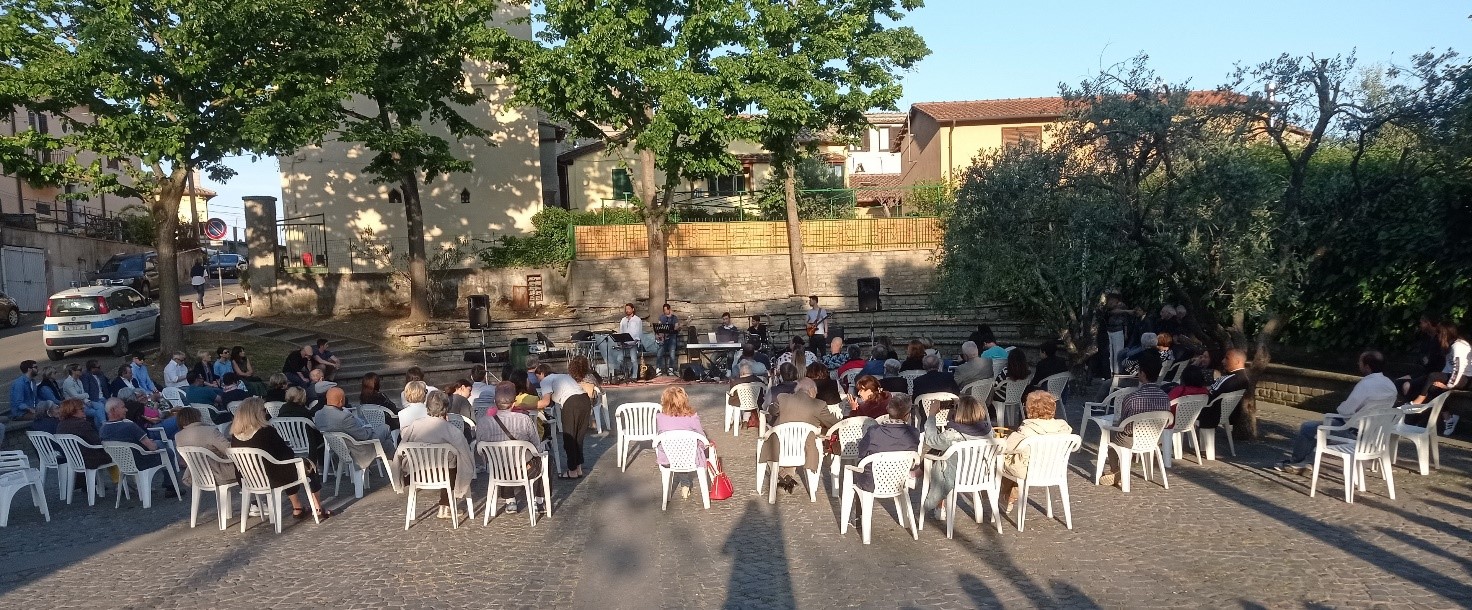 Una domenica, quella di ieri, che non è stata una domenica qualunque grazie a un evento semplice e geniale organizzato dall’amministrazione comunale di Manziana in sinergia con l’associazione “Il Mascherino”: Souvenir d’Italie in piazza Sciarra a Quadroni, un viaggio nella musica italiana da nord a sud è ciò che è stato regalato da un quintetto di musicisti d’eccezione. Saverio Martucci al pianoforte e voce, Alessandro Tomei ai sax soprano e contralto, Michele Telegramma alla chitarra, Roberto Gallinelli al basso e Matteo Di Francesco alla batteria hanno portato i numerosi spettatori in un viaggio musicale attraverso i brani più celebri della musica italiana, interpretati con sfumature jazz per renderli più morbidi e fluidi e con la voce calda e tonica del maestro Martucci. Da Luigi Tenco a De Andrè, da Gino Paoli ai Tazenda, e poi Baglioni, Vasco Rossi, De Gregori, ripercorrendo le diverse espressioni artistiche del nostro Bel Paese dal Piemonte alla Sicilia. La spensieratezza come filo conduttore per accompagnare il sole al tramonto, l’informalità di un’amministrazione presente tra i suoi concittadini che hanno risposto all’appello dell’arte dei suoni; perché la musica è anche questo, fusione e funzione di comunità.