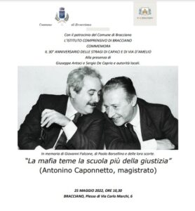 Ic Bracciano, domani la commemorazione di Falcone e Borsellino