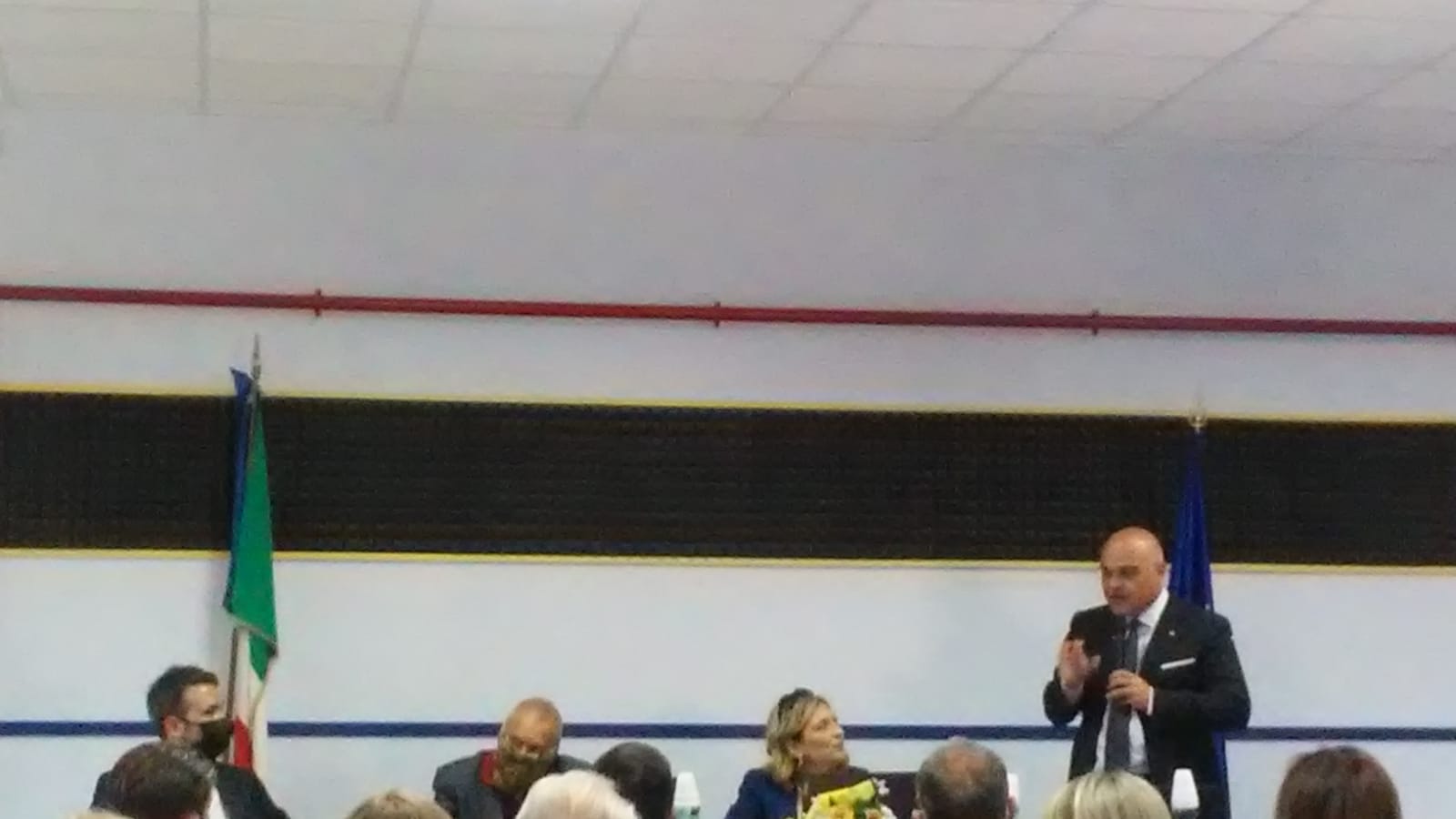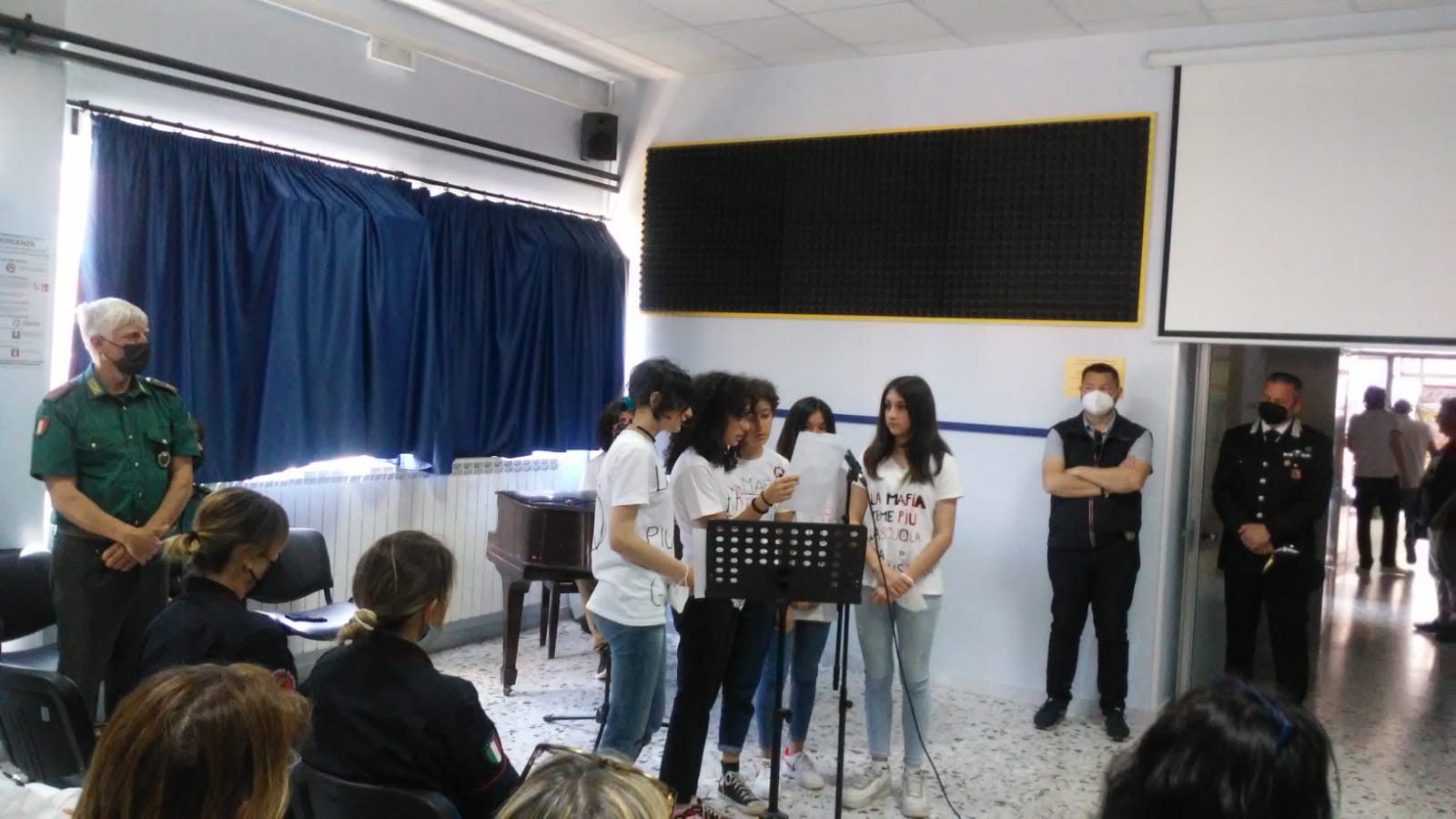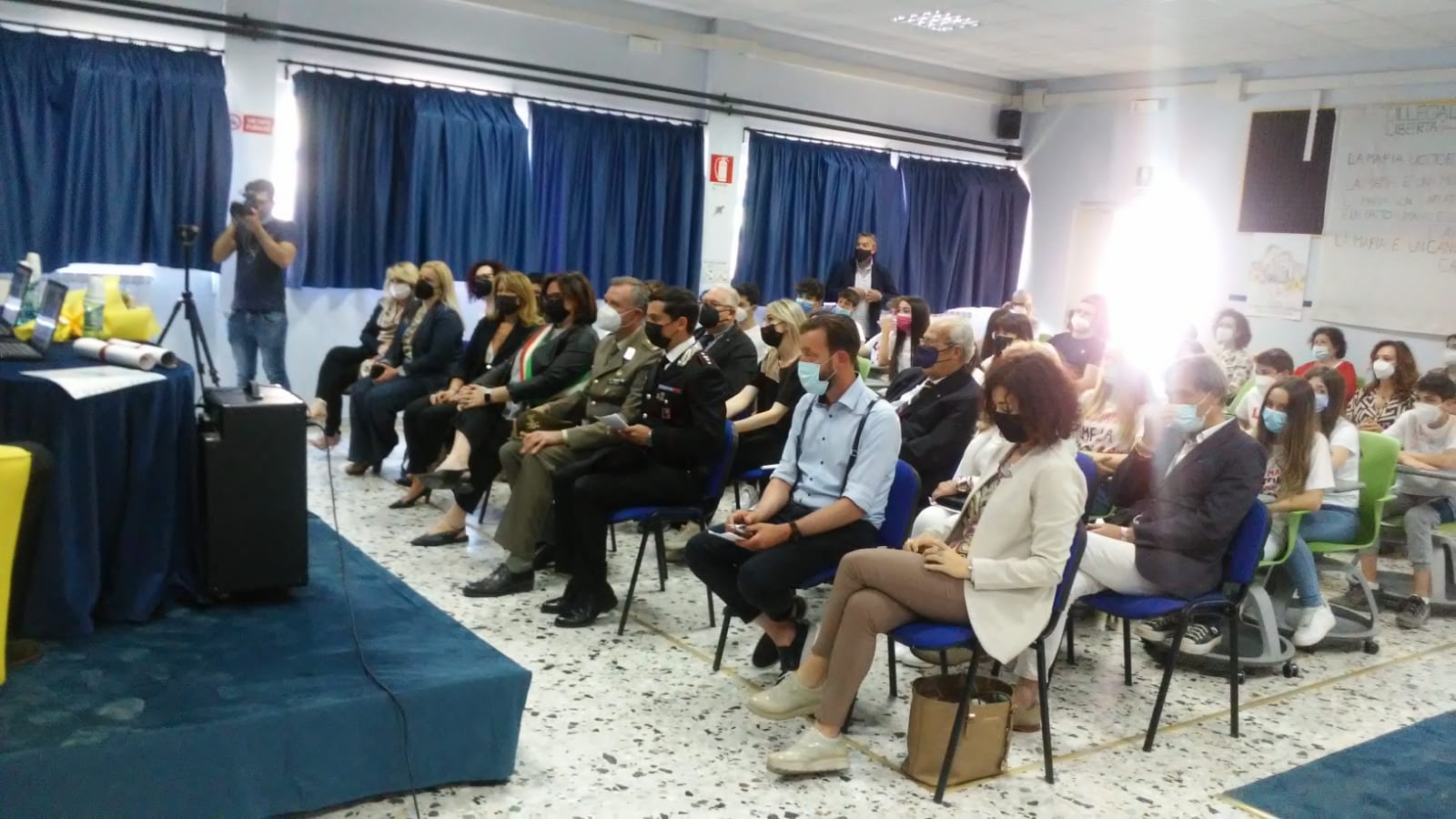 Ad accogliere Giuseppe Antoci e Sergio De Caprio la professoressa Lucia Lolli e tante autorità civili e militari, gli studenti, gli insegnanti dell’istituto e altri delle scuole del territorio, attenti e forieri di iniziative preparatorie alla giornata.