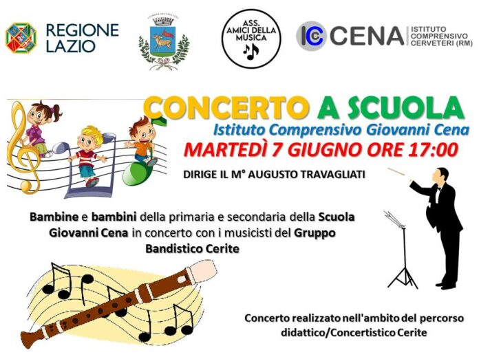 “In occasione dei due precedenti concerti infatti – prosegue Pascucci – questi piccoli musicisti si sono esibiti insieme ai componenti del Gruppo Bandistico Cerite, dando vita ad un bellissimo ensemble che ha emozionato tutti i presenti. In repertorio, anche questa volta, marcette, brani più o meno celebri. Il concerto di martedì 7 giugno sarà inoltre occasione per i ragazzi delle classi quinte di salutare la propria scuola e le proprie insegnanti, prima di avventurarsi nel nuovo percorso di studio delle medie. A tutti i ragazzi, i miei complimenti e i miei auguri per il percorso scolastico futuro, con la speranza che questo progetto li abbia fatti non solo avvicinare, ma innamorare della musica e che magari in futuro possano anche loro esibirsi all’interno del Gruppo Bandistico Cerite”.