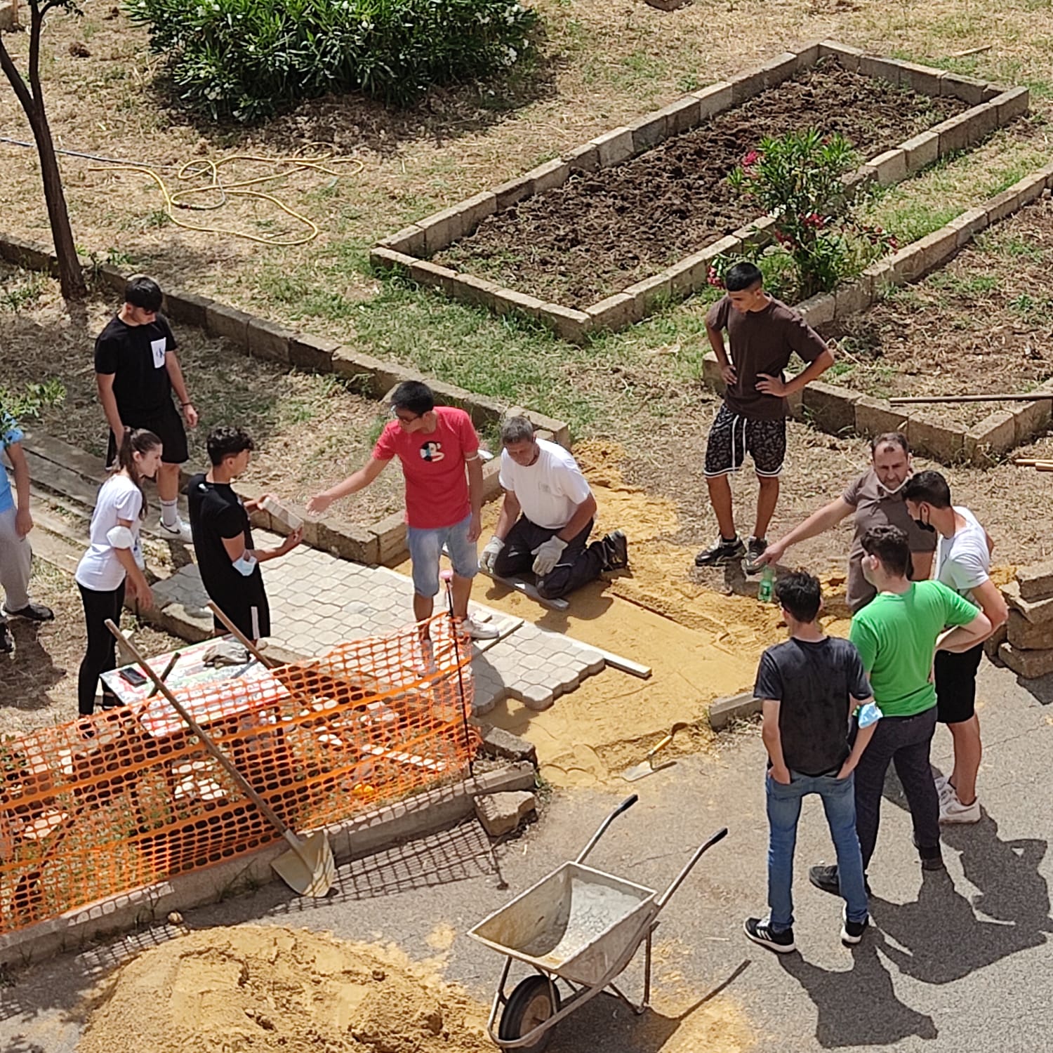 Si è trattato di un intervento di miglioramento funzionale del giardino interno della scuola, con la realizzazione di uno spazio per la cura di piante e fiori, panchine e l’impianto di un piccolo orto. Il giardino, considerato una risorsa che integra e completa gli spazi interni della scuola, ambiente sociale e di apprendimento, consentirà di dar vita ad uno spazio laboratoriale concreto, ampliando il contesto educativo dall’aula all’ambiente circostante.