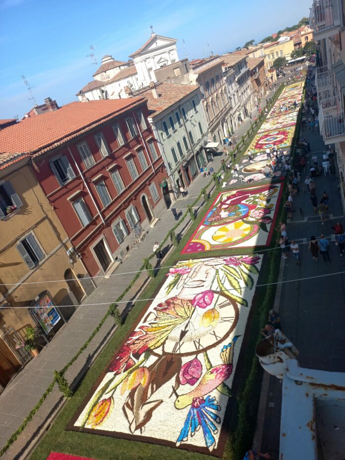 Si è svolta a Genzano la 244° edizione dell’Infiorata. Una tradizione centenaria che nasce come festa religiosa legata al Corpus Domini che nel tempo si è trasformata in una vera e propria composizione artistica di quadri floreali conosciuta oltre i confini nazionali. Ad accogliere le autorità presenti il Sindaco Carlo Zoccolotti, presenti oltre il Vice Sindaco della Città metropolitana Sanna, la Presidente della IX Commissione Consiglio Regionale del Lazio Eleonora Mattia e numerosi Sindaci del territorio.