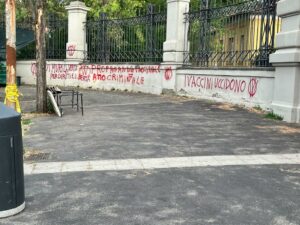 “Stanotte sono stati imbrattati i muri dell’entrata dell’Istituto Spallanzani con frasi choc e farneticazioni. Condanno fortemente questo gesto vile ed auspico che gli autori siano presto individuati. Questi vigliacchi non hanno rispetto di chi in prima fila sta combattendo per difendere la salute di tutti”. Lo dichiara l’Assessore alla Sanità della Regione Lazio, Alessio D’Amato.
