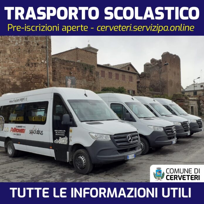 C’è tempo fino al 31 luglio per effettuare la preiscrizione al servizio di trasporto scolastico per l’anno scolastico 2022 – 2023. La preiscrizione può essere effettuata solo ed esclusivamente online mediante il portale https://cerveteri.servizipa.online.