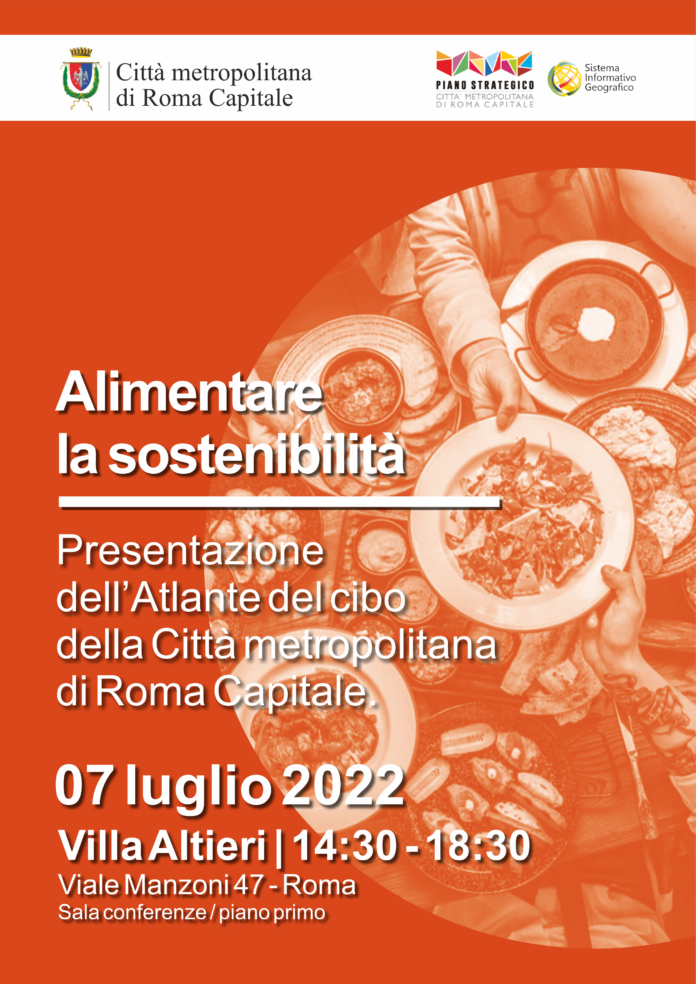 L’evento di presentazione dell’Atlante costituisce l’avvio di un percorso condiviso di costruzione del Piano del Cibo della Città metropolitana di Roma Capitale, documento di pianificazione economica, sociale e ambientale che, partendo da una analisi del sistema del cibo, permetta di delineare politiche economiche e territoriali volte a implementare gli obiettivi di sviluppo sostenibile nel sistema di produzione e consumo.