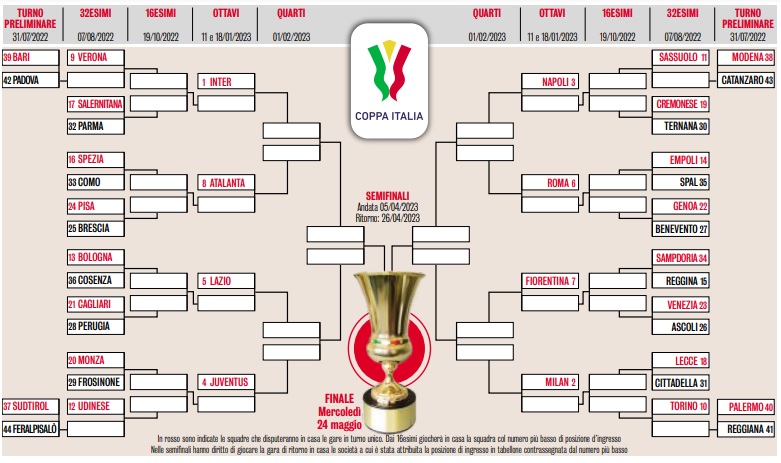 Calcio, coppa Italia, il calendario