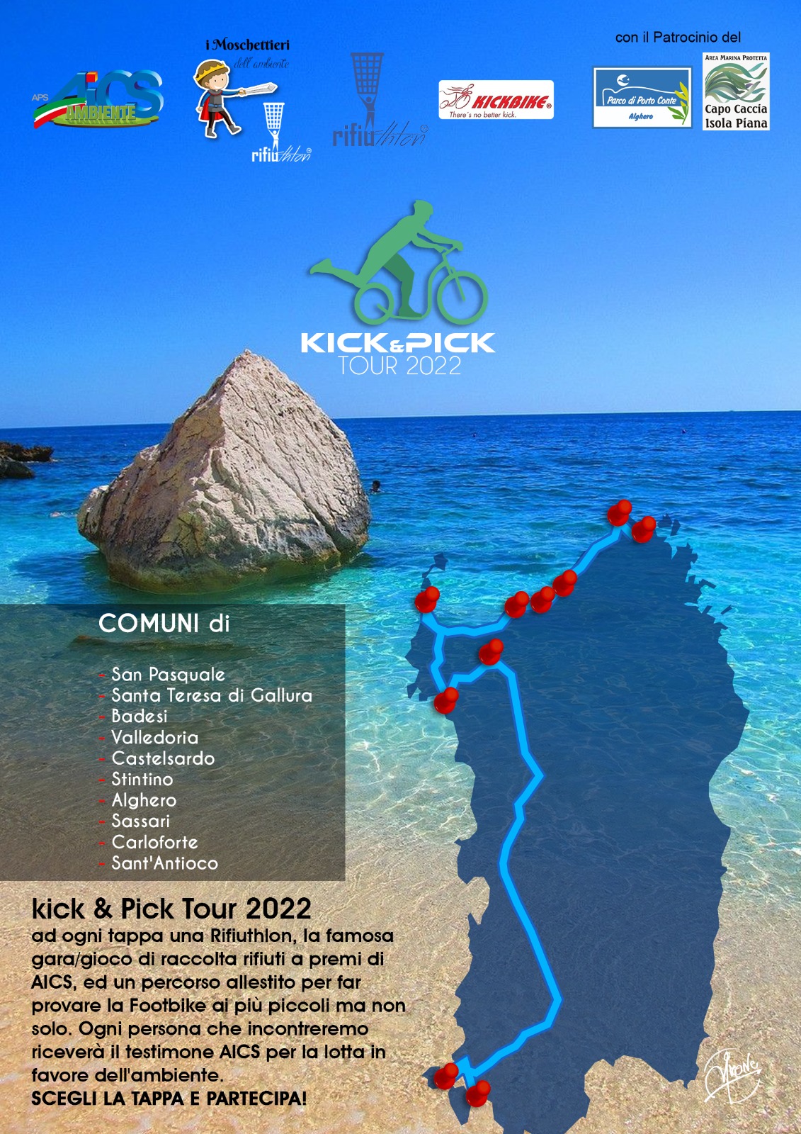 Il tour toccherà il 21 luglio mattina Porto Liscia, il 21 pomeriggio Valledoria, il 22 luglio mattina Badesi, il 22 pomeriggio Stintino, il 23 luglio mattina Santa Teresa di Gallura, il 23 pomeriggio Castelsardo, il 24 luglio mattina Alghero, il 24 pomeriggio Sassari, il 25 luglio mattina Carloforte, il 25 pomeriggio e il 26 luglio mattina Sant’Antioco. In ogni tappa si terrà prima una ‘Rifiuthlon’ (gara a premi di raccolta di piccoli rifiuti dalle spiagge) e poi un percorso di prova, in una piazza o sul lungomare, con le  Kickbyke, il cosiddetto monopattino sportivo muscolare (disponibile anche in versione elettrica, adatta a tutti), simbolo della mobilità green. Ad ogni partecipante, verrà inoltre consegnato un volantino con il decalogo di ‘Comincio io’, che contiene pochi e concreti suggerimenti per apportare un cambiamento nell’impatto ambientale delle abitudini di ciascuno, dalla scelta di prodotti con packaging ridotto o biodegradabile all’invito a ridurre o eliminare il consumo di carne e pesce provenienti da allevamenti intensivi. “Perché fare la differenza ogni giorno è importante almeno quanto fare la differenziata”, sintetizza con una battuta il presidente di Aics Ambiente, Andrea Nesi. L’iniziativa ha trovato l’adesione entusiasta di molte amministrazioni comunali. E non solo. Ad Alghero, ad esempio, ha ottenuto anche il patrocinio e la partecipazione dell’Area marina protetta Capo Caccia – Isola piana e del parco di Porto Conte.