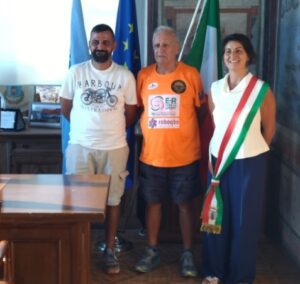 Il 22 e il 23 luglio, i comuni di Anguillara e Bracciano sono stati interessati dalla sosta e dal transito di Alessandro Belliere, un ex alpino-paracadutista di 89 anni, che da qualche tempo è balzato all’onore della cronaca per le sue “camminate nazionali”, lunghe oltre 2000 chilometri, meticolosamente scelte da nord a sud per valorizzare e riscoprire le bellezze dell’Italia. Partendo questa volta da Palermo e “armato” solo di un piccolo zaino e di una immensa determinazione Belliere, detto “lo squalo”, nella sua attuale impresa si prefigge di percorrere complessivamente quasi 3000 chilometri toccando in 104 tappe altrettanti comuni italiani, fra cui proprio Anguillara e Bracciano. Per la circostanza, entrambi i comuni sabatini si sono prodigati per accogliere il camminatore, esprimendo a nome delle rispettive cittadinanze sia simpatia edammirazione per l’impresa in itinere, sia fornendo quel necessario supporto e ristoro indispensabili per chi arriva da lontano. Alcuni atleti dell’Asd Trail dei 2 Laghi hanno accolto e accompagnato il podista ben prima del suo arrivo ad Anguillara, successivamente scortandolo fino al “cambio del testimone” ai confini comunali con Bracciano, dove diverse coraggiose camminatrici braccianesi, sotto un sole cocente, hanno “preso in consegna” l’alpino per indirizzarlo verso la sede di piazza 4 Novembre. Sotto la maestosità del castello Odescalchi, l’assessore Emanuela Viarengo ha accolto, con la fascia tricolore, l’affaticato ma festoso e folto gruppo di camminatori di entrambi i comuni sabatini, capeggiato dall’indomito Alessandro Belliere, ospitandoli all’interno della sala consiliare, in un ambiente con temperature decisamente più fresche. Dopo l’indirizzo di benvenuto rivolto dalla rappresentante del Comune e scattate le foto-ricordo di prassi, davanti alle indispensabili bevande dissetanti, i convenuti sono stati attratti dalla simpatia di Alessandro e coinvolti dalla sua loquacità nel raccontare le proprie imprese sin qui completate. Ancora un lungo cammino aspetta lo “squalo”: il 24 luglio, dopo il viaggio in nave, si appresterà ad attraversare la Sardegna, dalla quale rientrerà il 7 agosto per ripartire il giorno successivo proprio da Bracciano verso Capranica, in direzione nord. Un “ben fatto” va rivolto ai Comuni, ai simpatizzanti e all’Asd Trail dei 2 laghi che si sono prodigati per sostenere l’impresa dimostrando solidarietà ed unità d’intenti.