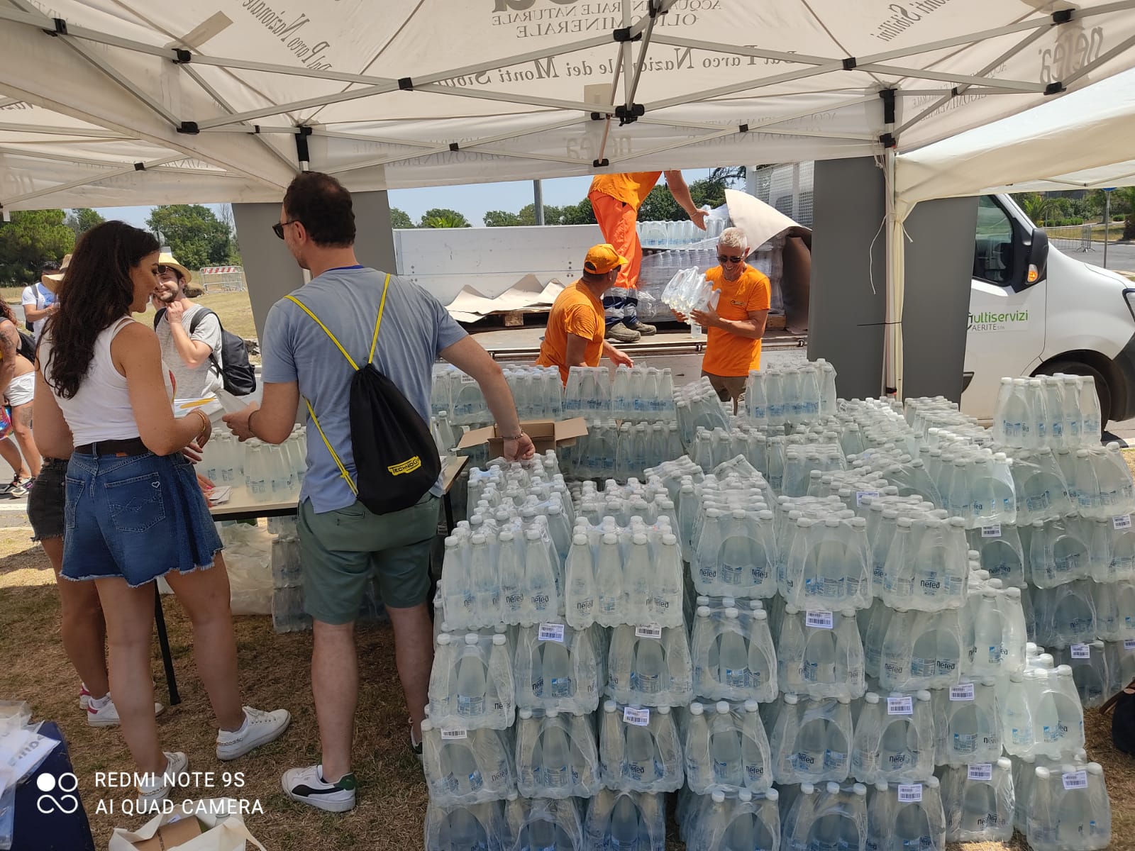 L’iniziativa, spiega una nota della municipalizzata Caerite, è volta ad offrire refrigerio agli spettatori del concerto di Jovanotti, anche in vista del gran caldo di queste ore. Oltre alle bottigliette d’acqua saranno distribuiti degli integratori salini.