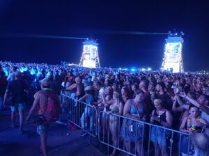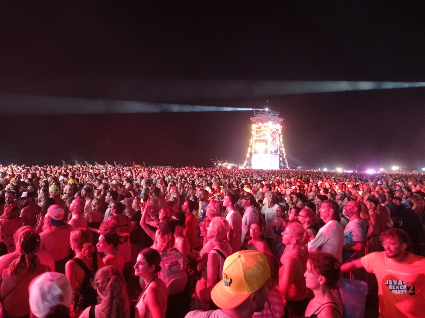 Due giorni di sole rovente, sale, musica e ritmi irrefrenabili sono stati quelli dello scorso sabato e domenica a Marina di Cerveteri, dove si è abbattuto il ciclone Jovanotti. Dopo due anni difficili per tutti, l’artista amato dai giovani di tutte le età ha di nuovo acceso la spiaggia con il suo “Jova Beach Party”; una festa in fondo, dove a essere celebrata è la musica, il ritmo e il divertimento. Una festa dai grandi numeri, oltre 24.000 biglietti venduti il sabato, quasi 20.000 la domenica, una moltitudine umana di giovani e meno giovani disposti a sopportare ore di fila rovente per accedere all’area concerto, dove ad attenderli c’era un Lorenzo Cherubini più in forma che mai.