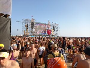 Cancelli aperti dalle 14, già dalle 15 l’artista ha iniziato a intrattenere il suo esercito di fan con ritmi irresistibili. Non è servito molto di più perché la festa riuscisse; migliaia di persone in costume che tra un tuffo al mare e una doccia per combattere il sole torrido degli ultimi giorni ha atteso ballando l’inizio del concerto vero e proprio, iniziato verso le 20.30 e terminato quasi a mezzanotte di entrambe le giornate. Un popolo in festa quello di Jovanotti, esortato al rispetto del luogo che li stava ospitando e inebriati dalle sonorità divergenti dell’artista. A rendergli omaggio ospiti illustri, quali Renato Zero la prima sera, Raf e Paola Turci la sera di domenica. Cerveteri ombelico di un mondo che ha voluto dimenticare per due giorni le non poche difficoltà passate e presenti. Organizzazione perfetta quella del Jova Beach Party, che non ha fatto registrare alcuna criticità. Un apparato di sicurezza posto in essere dalla questura coordinata dalla Polizia Locale, tanto ineccepibile e poderoso quanto discreto, viabilità gestita senza congestioni significative, treni speciali messi a disposizione dall’organizzazione in accordo con Trenitalia che al termine del concerto hanno riportato a casa migliaia di giovani stanchi ma felici.