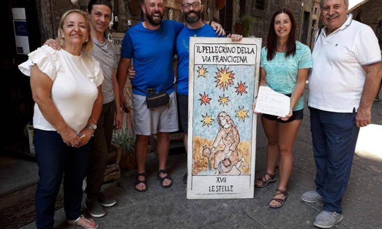 Riceviamo e pubblichiamo: “Percorrere a piedi la via Francigena, trovando ad ogni passo la fiducia in sé e nonostante le proprie fragilità, essere in grado di tendere la mano agli altri, credo sia una testimonianza molto significativa di come, dal dolore e da una difficoltà individuale, si possa trovare la volontà di reagire grazie alla bellezza rigenerante dell’altruismo. Il 6 agosto a distanza di 4 anni, Christian Vitali ha fatto tappa a Viterbo, un ragazzo affetto dal morbo di crohn, originario di Parabiago, in provincia di Milano, insieme alla sua compagna Sonia Bono, hanno ideato il cammino di 300 km per “i guerrieri invisibili”, una camminata sulla via Francigena fino a Roma per sensibilizzare sulle malattie rare, destinando il tratto da Montefiascone a Viterbo alla Sindrome fibromialgica. Una camminata per favorire la sensibilizzazione sulle malattie poco conosciute e poco visibili dall’esterno e raccogliere fondi. Ieri mattina ad accoglierlo al loro arrivo a Piazza del Comune erano presenti l’Associazione fibromialgici Libellula Libera APS con il suo presidente e una rappresentanza di soci, e la Consigliera Comunale Alessandra CROCI che a nome dell’Amministrazione Comunale ha congegnato un gagliardetto della città di Viterbo.
