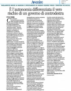 Di seguito, il mio commento su autonomia differenziata pubblicato da Avvenire e i link alle due ultime presentazioni del libro. La prima, al Teatro della XII a Spinaceto, con il prof De Santoli ( candidato alla Camera per il M5S), Giuseppe Libutti, Anna Falcone e Monica Di Sisto. La seconda, all’Associazione Berlinguer al Quadraro, con Francesca Flati ( Candidata alla Camera per il M5S) e Enzo Proietti.