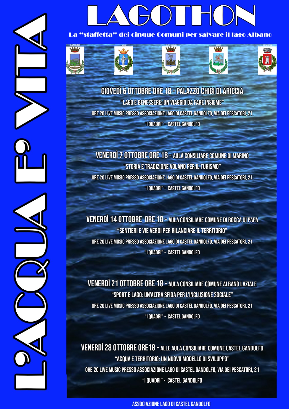 “Lago e Benessere: un viaggio da fare insieme” è il titolo dell’incontro che si svolgerà giovedì 6 ottobre, ore 18, all’interno di Palazzo Chigi ad Ariccia. L’iniziativa promossa dall’Associazione Lago di Castel Gandolfo è la prima di cinque appuntamenti che vedono impegnati i comuni di Ariccia, Marino,Rocca di Papa, Albano Laziale e Castel Gandolfo in una campagna di sensibilizzazione a difesa del Lago Albano. Partecipano all’iniziativa di giovedì: il sindaco di Ariccia Gianluca Staccoli, l’assessore ai lavori pubblici Michele Serafini, il presidente del Consiglio Comunale Michele Filosofi, il consigliere delegato all’Agricoltura Matteo Giobbi, il referente del Consorzio Litorale Nord Pietro di Lazzaro, un delegato dell’Associazione Lago di Castel Gandolfo e la giornalista Chiara Rai.