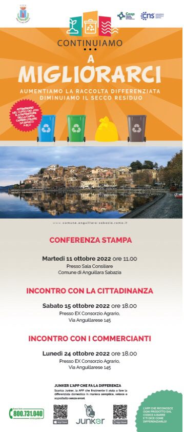 Alla conferenza stampa interverrà il Sindaco, esponenti dell’amministrazione comunale e della ditta Cosp Tecno Service, gestrice del servizio di igiene urbana, durante l’incontro si presenteranno le novità che riguarderanno sia la raccolta differenziata sia gli altri servizi connessi (spazzamento, centro di raccolta comunale, Ecoisole Informatizzate), sarà presentata anche la campagna informativa che coinvolgerà la cittadinanza.