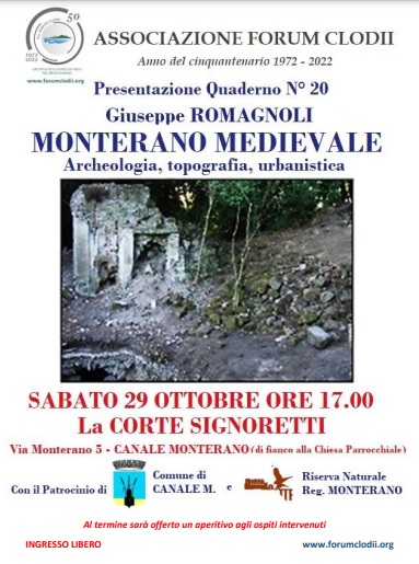 Sabato 29 ottobre presentazione del Quaderno della Forum Clodii n.20 “Monterano Medioevale” di Giuseppe Romagnoli.