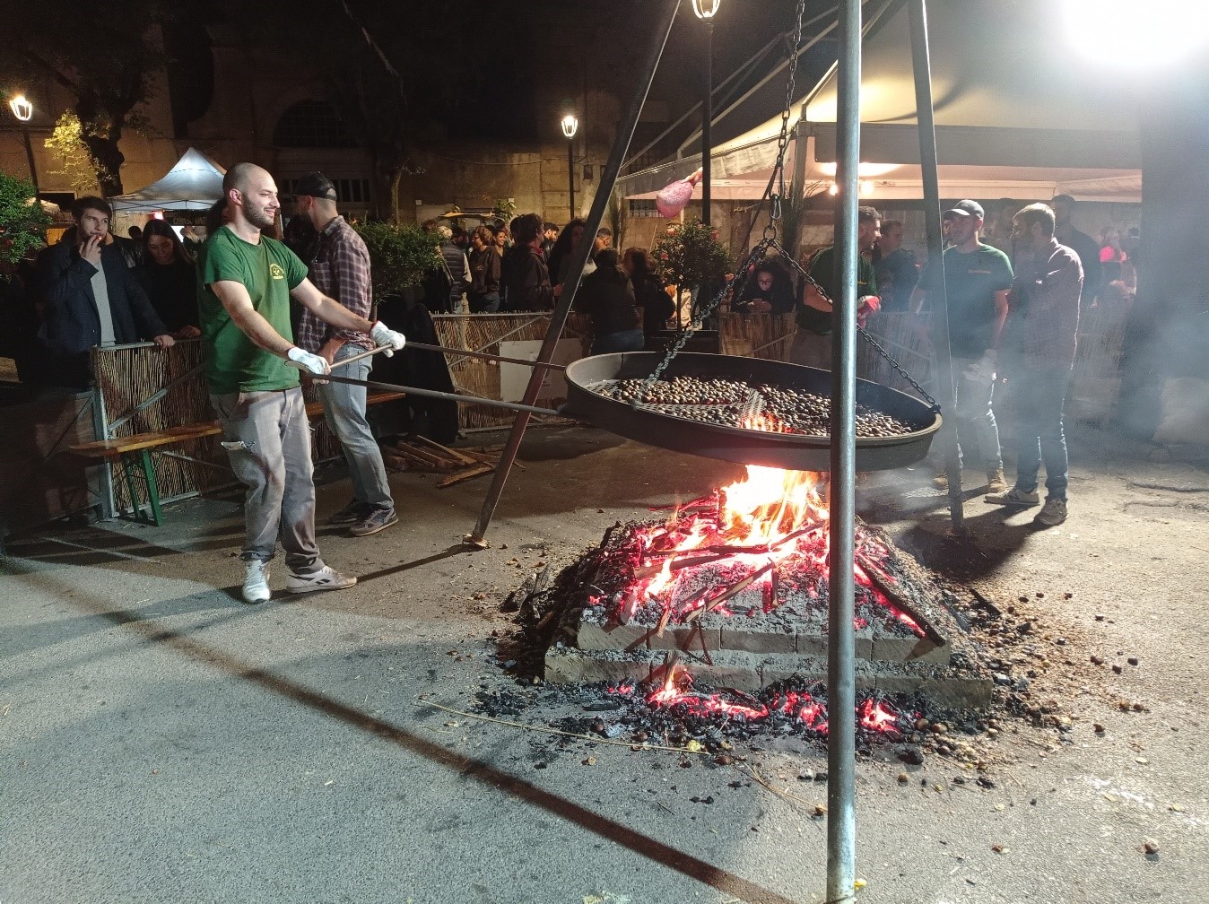 Venerdì 14 e sabato 15 è tornata, dopo due anni di stop imposto dalla pandemia, la Sagra della Castagna, uno degli eventi più attesi dai manzianesi e dai turisti. Un ritorno con presupposti di cautela, la cui riuscita ha, però, esasperato ogni più ottimistica aspettativa; qualsiasi stima numerica, che comunque è nell’ordine delle migliaia a doppia cifra, non renderebbe quanto il colpo d’occhio di Corso Vittorio Emanuele, Via Roma e Piazza Tittoni gremite quasi a voler irridere quel maligno impedimento infettivo che per due anni ha impedito di mettere in moto una macchina così perfetta. Gli oltre duecento volontari dell’Associazione Culturale della sagra della castagna locale hanno allestito stand gastronomici ed eventi, curando minuziosamente ogni più piccolo particolare necessario al perfetto funzionamento dell’intento di far assaporare per due giorni i sapori e le autenticità locali. I menu assortiti dai prodotti autunnali sono stati letteralmente presi d’assalto da file chilometriche e pazienti di persone di ogni età; funghi porcini declinati in diverse pietanze, acquacotta, e ovviamente ricette succulente alle castagne, vino locale e selvaggina, hanno estasiato gli intervenuti in un clima allegro e rilassante. Dulcis in fundo, le caldarroste, realizzate in scenografici padelloni orchestrati da mani sapienti e veterane.