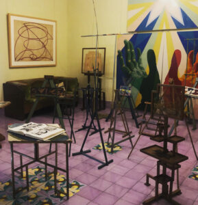 Giacomo Balla, oltre a Fortunato Depero, ha un ruolo centrale per il passaggio dalla prima stagione del futurismo a quella più lunga che si apre nel 1915. La casa-museo che diventa mostra, dal titolo “Casa Balla – Dalla casa all’universo e ritorno”, è realmente l’appartamento in cui ha vissuto l’artista con la sua famiglia. L’abitazione è composta da più camere da letto, da un lungo disimpegno (come si usava nella suddivisione degli interni del tempo), da un salotto, da una cucina e da un bagno; in tutte le stanze è possibile ammirare le decorazioni – eseguite dall’Artista – di pareti, mobili, porte, oggetti e utensili per la vita di tutti i giorni che ci danno la misura di quanto Balla non facesse più distinzione tra arte applicata e arte, lui sconfina dal quadro: troviamo anche alcuni dei suoi celebri ritratti e i dipinti delle figlie Elica e Luce Balla ma soprattutto studi su carta, pannelli decorativi (quelli presenti nel corridoio sono firmati ‘Futurballa’ firma che utilizzerà dal 1913 in poi) ma anche piastrelle, mobilio, pomelli con temi ricorrenti che in ogni stanza richiamano altri dettagli come i tappeti, i piatti, le suppellettili e i fiori futuristi dando a ogni ambiente una impronta caratterizzante attraverso la ripetizioni di moduli in quanto a forma e colori. I capi d’abbigliamento sono centrali nella sua ricerca e se ne possono vedere alcuni esposti su degli attaccapanni all’interno della Casa. Sono presenti anche decorazioni e ricami su tessuti eseguiti da Elica e Luce Balla.