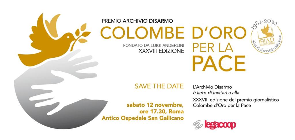Alla vigilia della manifestazione del 5 novembre, che porterà in piazza decine di migliaia di manifestanti per la pace in Ucraina, Archivio Disarmo lancia la 38° edizione del Premio Colombe d’oro per la Pace, rispondendo all’appello di incoraggiamento di Papa Francesco “a continuare a lavorare per la verità, la libertà, il dialogo, la giustizia e la pace”.