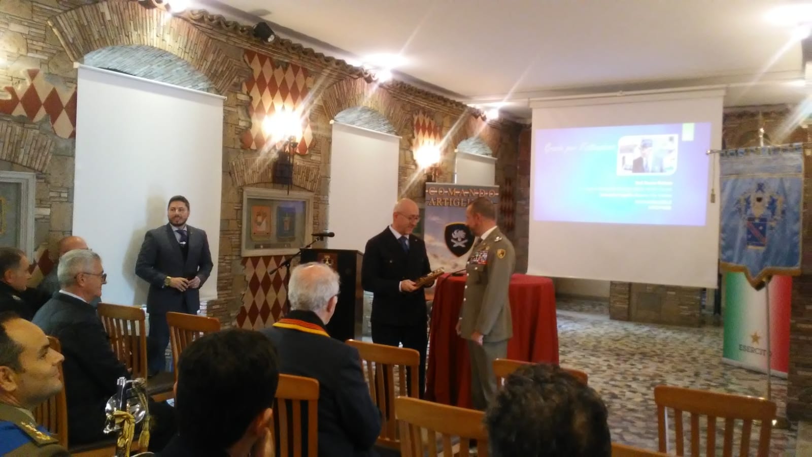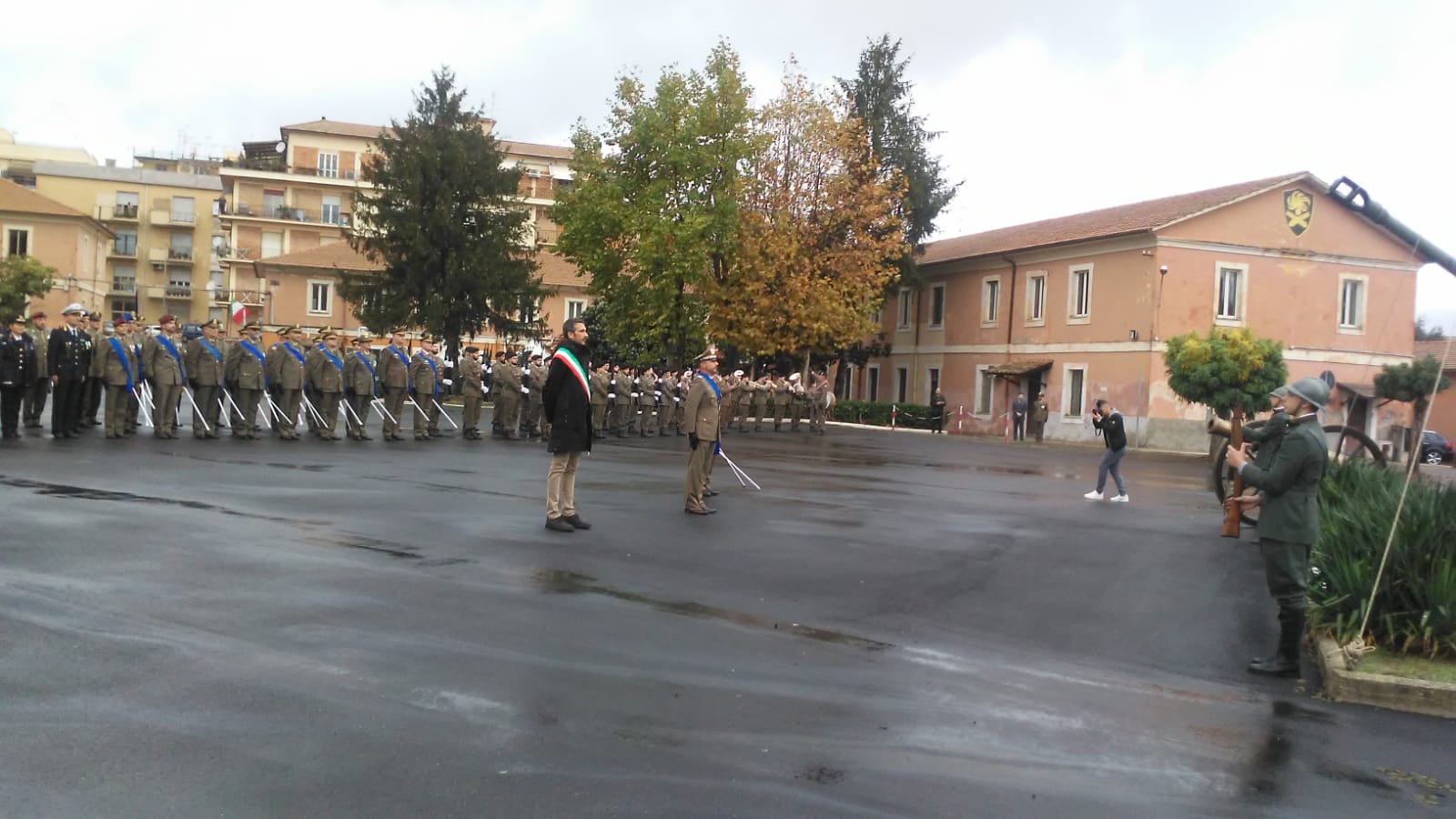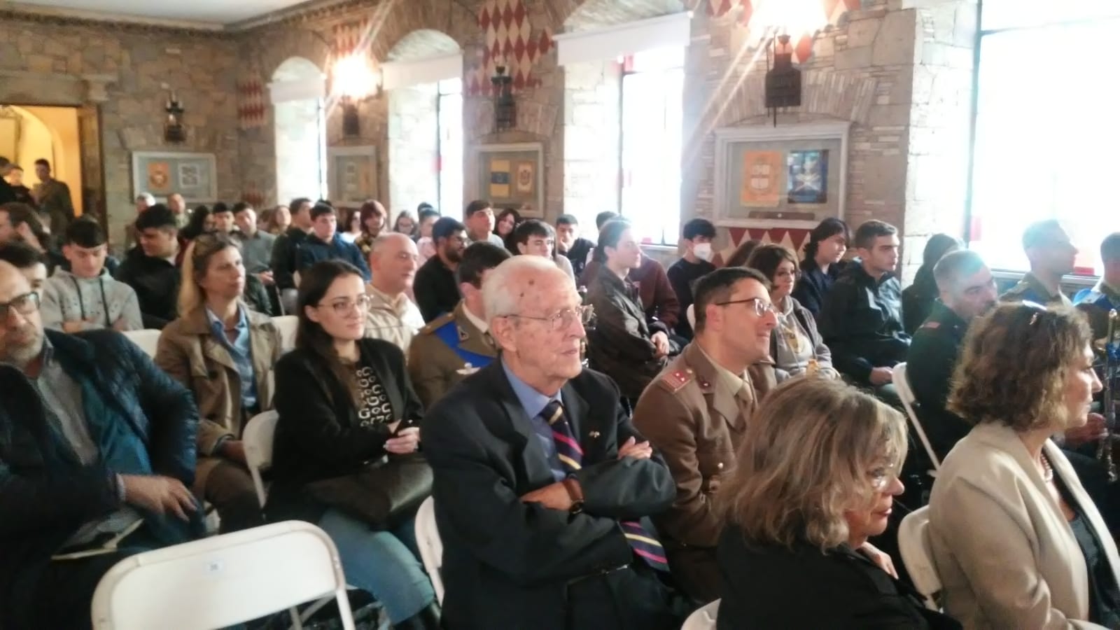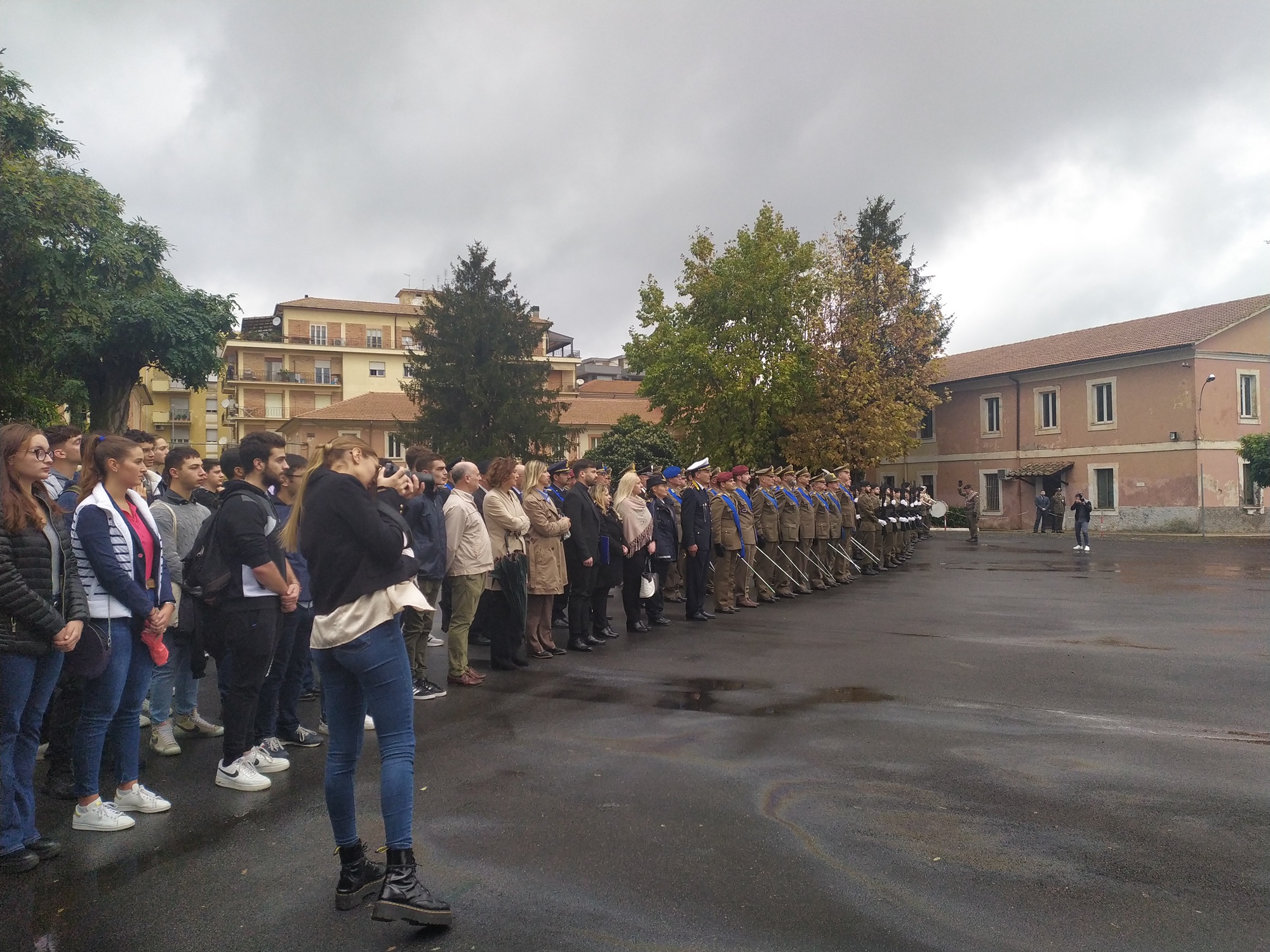 Presenti numerose delegazioni delle diverse forze armate impegnate sul territorio, il sindaco Marco Crocicchi, il Presidente dei Lions,  gli studenti del Liceo Ignazio Vian e dell’Istituto Salvo D’Acquisto con le rispettive dirigenti Lucia Lolli e Lucia Dutto, che hanno assistito ad un breve seminario, moderato dal Maggiore Gianluca Mineo, all’interno di uno degli edifici storici della Caserma Cosenz.