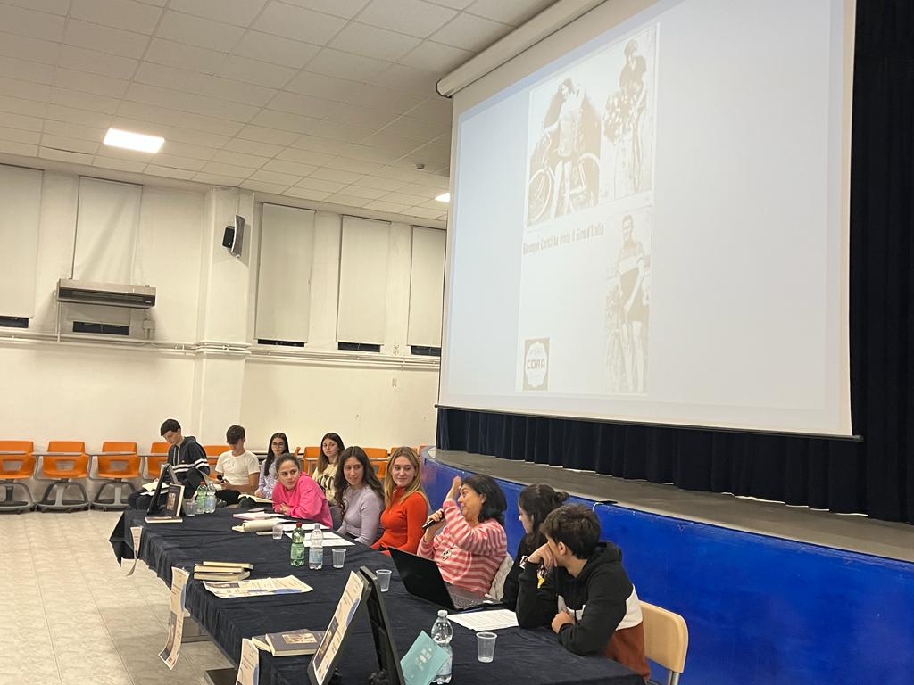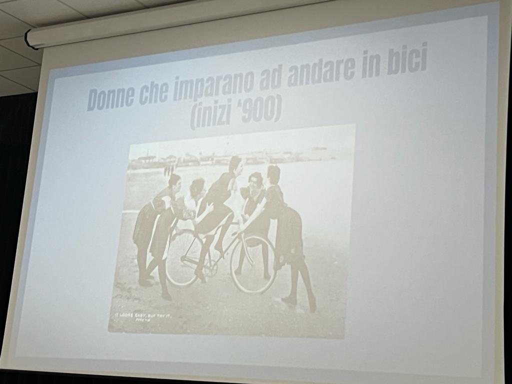 Attraverso immagini proiettate dai ragazzi abbiamo ripercorso la vita della ciclista Alfonsina Morini Strada, una vita che ha attraversato l’intero 900, dalla prima guerra mondiale alla fine della seconda. Semplice e al contempo accattivante la scrittura dell’autrice, i cui passi sono stati condivisi attraverso una brillante lettura dei miei compagni; particolarmente interessanti le letture sul rapporto di Alfonsina e la luna e l’incontro di Alfonsina con i Romanov.