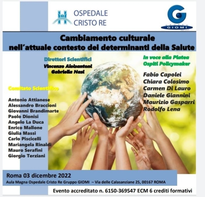 “Cambiamento culturale nell’attuale contesto dei determinanti della salute”. È il tema del convegno medico – scientifico in programma sabato 3 dicembre, a partire dalle ore 9.30, nell’aula magna dell’Ospedale Cristo Re di Roma – Gruppo GIOMI, alla presenza dell’Amministratore Delegato, Massimo Miraglia. L’appuntamento, a cura dei Direttori Scientifici del Congresso, Vincenzo Aloisantoni e Gabriella Nasi, vedrà la partecipazione di numerosi esponenti del mondo scientifico e delle istituzioni. Ad intervenire, i deputati Chiara Colosimo e Carmen Di Lauro, il Senatore Maurizio Gasparri e i consiglieri regionali del Lazio, Fabio Capolei, Daniele Giannini e Rodolfo Lena.