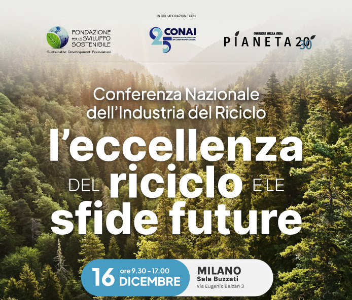 A Milano il 16 dicembre dalle 9.30 alle 17 c’è la Conferenza nazionale dell’Industria del Riciclo “L’eccellenza del riciclo e le sfide future”.