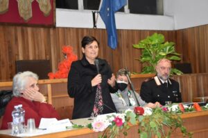 Graziella Lombi la Presidente dell’Associazione “Spazio Supporto Donna” di Oriolo Romano ha parlato di tre importanti direttive quali la formazione dei giovani, rieducazione anche degli uomini e la possibilità, per chi ne abbia necessità perché vittima di violenza, di trovare un centro a cui rivolgersi in modo facile. Nel suo intervento ha citato il libro “Ferite a morte” di Serena Dandini.