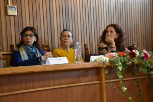 In primis vogliamo porre la testimonianza di Chiara Ricci, scrittrice e ricercatrice laureata al DAMS in Cinema televisione e produzione multimediale, perché il suo intervento al Convegno non è stato sulle sue importanti competenze professionali ma per raccontare con coraggio e generosità la sua esperienza di donna vittima di violenza. Tendendo la mano a chi ha bisogno di aiuto a orientarsi in situazioni analoghe alla sua. Lapalissiano aggiungere che il momento è stato molto forte e toccante per le/i present*.