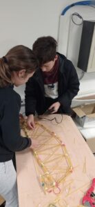 La progettazione è stata il fulcro intorno a cui si è sviluppato l’intero modulo: i ragazzi, partendo da attività ludiche e di sfida, si sono prima cimentati alla costruzione della “marshmallow tower” per passare, dopo aver appreso le nozioni di base sui carichi e sulle forze, alla progettazione vera e propria con l’attività “Spaghetti Bridges” in cui gli studenti, divisi in gruppi, hanno dovuto progettare e costruire un ponte fatto di spaghetti che avesse una luce netta di 60 cm e che fosse in grado di sopportare un determinato carico per un determinato arco di tempo.