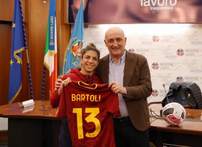 Oggi pomeriggio, il Presidente Vicario della Regione Lazio, Daniele Leodori ha ricevuto, presso la sede della Regione Lazio, le giocatrici della As Roma Femminile e la responsabile del settore femminile dell’Associazione Italiana Calciatori, Chiara Marchitelli.