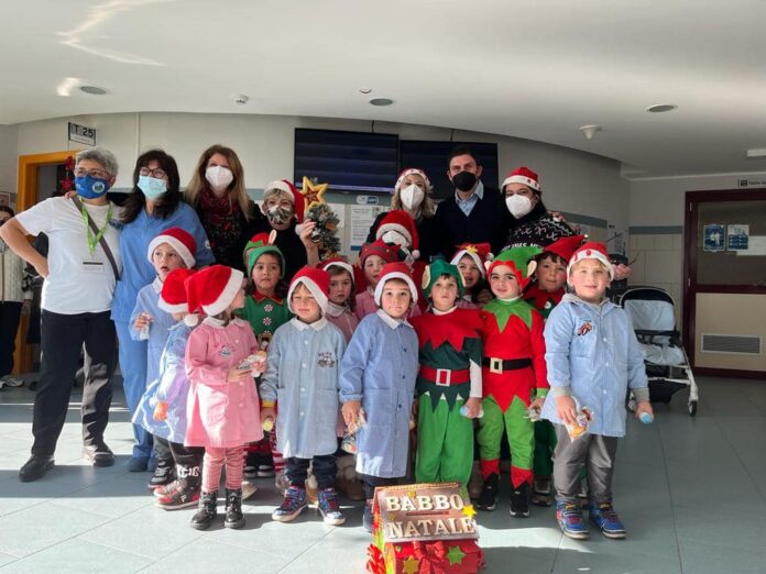 «Babbo Natale fa scalo al Bambino Gesù di Palidoro. Questa mattina era stato avvistato sorvolare la nostra Capitale e intorno alle 11,30 ha fatto la sua comparsa nella ludoteca dell’ospedale pediatrico “Bambino Gesù” di Palidoro! I bambini della sezione D della scuola dell’infanzia dell’Istituto Comprensivo “Corrado Melone” hanno vestito i panni dei folletti di Babbo Natale ed hanno animato la mattinata intonando canti e coinvolgendo i piccoli pazienti, genitori e personale tutto in balletti natalizi. Il vecchio Babbo ha voluto regalare un raggio di Natale ai bambini accorsi donando loro dolcini e tanti ausili didattici per la ludoteca.