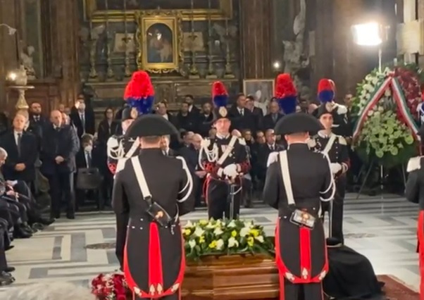 Celebrati dal cardinale Giovanni Battista Re si sono svolti poco fa nella Basilica dei Santi Apostoli, in piazza Santi Apostoli a Roma i funerali di Franco Frattini. PResenti fra gli altri il presidente della Repubblica Sergio Mattarella e il presidente del Consiglio Giorgia Meloni, oltre al Presidente della Camera Lorenzo Fontana e molti esponenti del governo tra cui il vicepremier e ministro degli Esteri, Antonio Tajani, il ministri Guido.