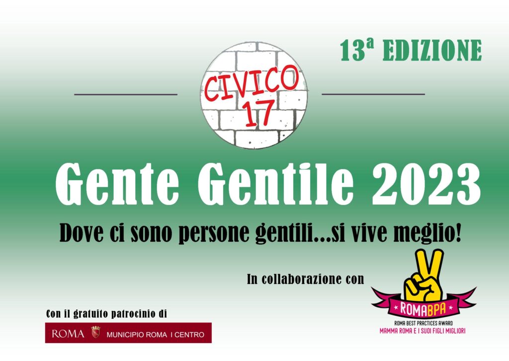 Promotrice di questa iniziativa è l’Associazione di quartiere ‘’Civico 17’’, che opera in Prati, Della Vittoria e Mazzini. ‘’Siamo arrivati alla 13 a edizione di questo calendario – dice il socio Massimo Marnetto – perché crediamo nella promozione della gentilezza, come fattore che aumenta la qualità della vita. Da qualche anno abbiamo aperto volentieri alla collaborazione con “Roma BPA Mamma Roma e i suoi Figli Migliori”, l’associazione che riconosce, sostiene e mette in rete le buone pratiche romane”. “Nel tempo – aggiunge Raffaele Caruso presidente di Civico 17 – abbiamo allargato il nostro raggio di attenzione dal quartiere all’intera città, includendo anche i nuovi italiani che si sono integrati a Roma”.