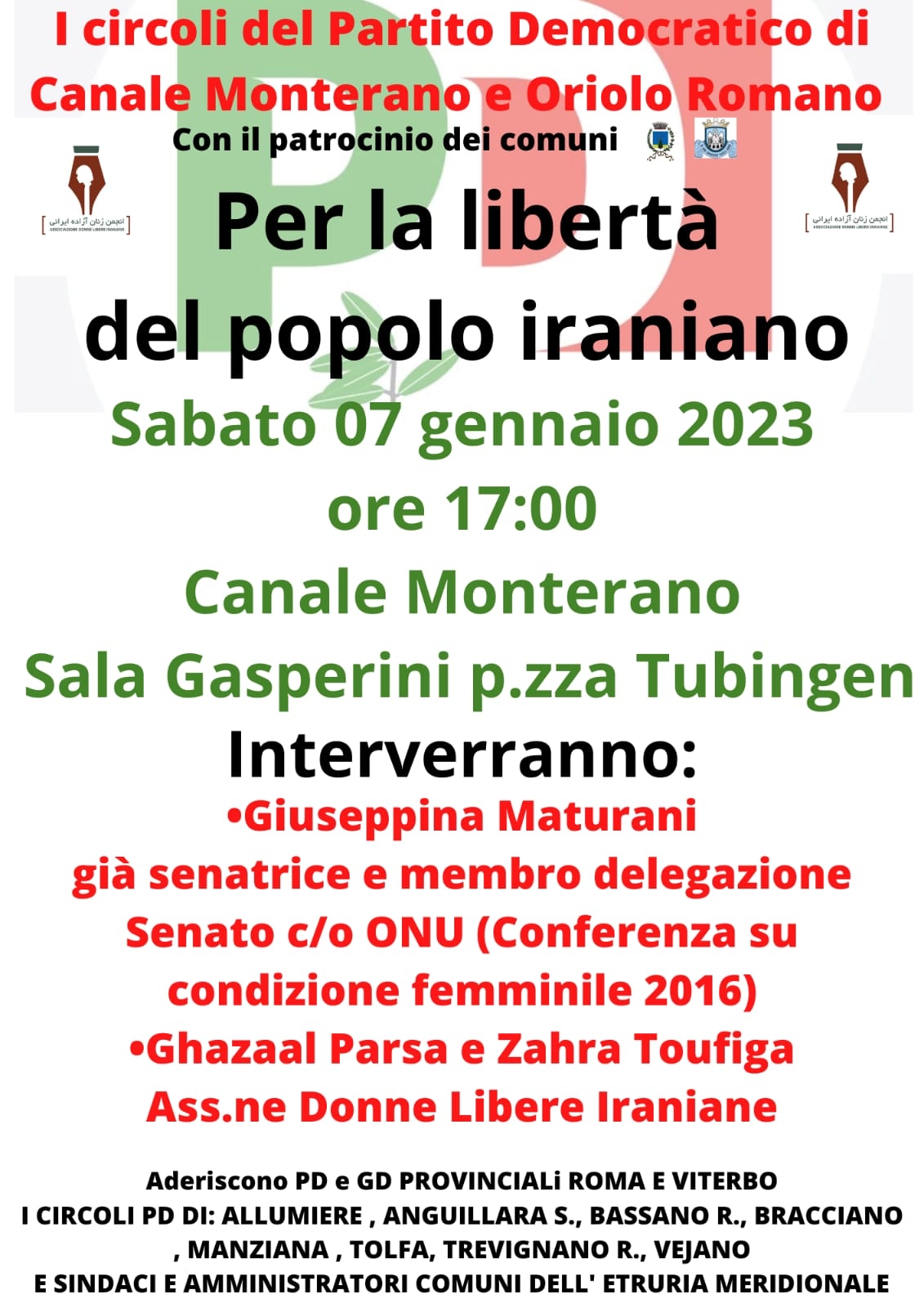 Oriolo e Canale, il 7 gennaio evento-Pd per l’Iran
